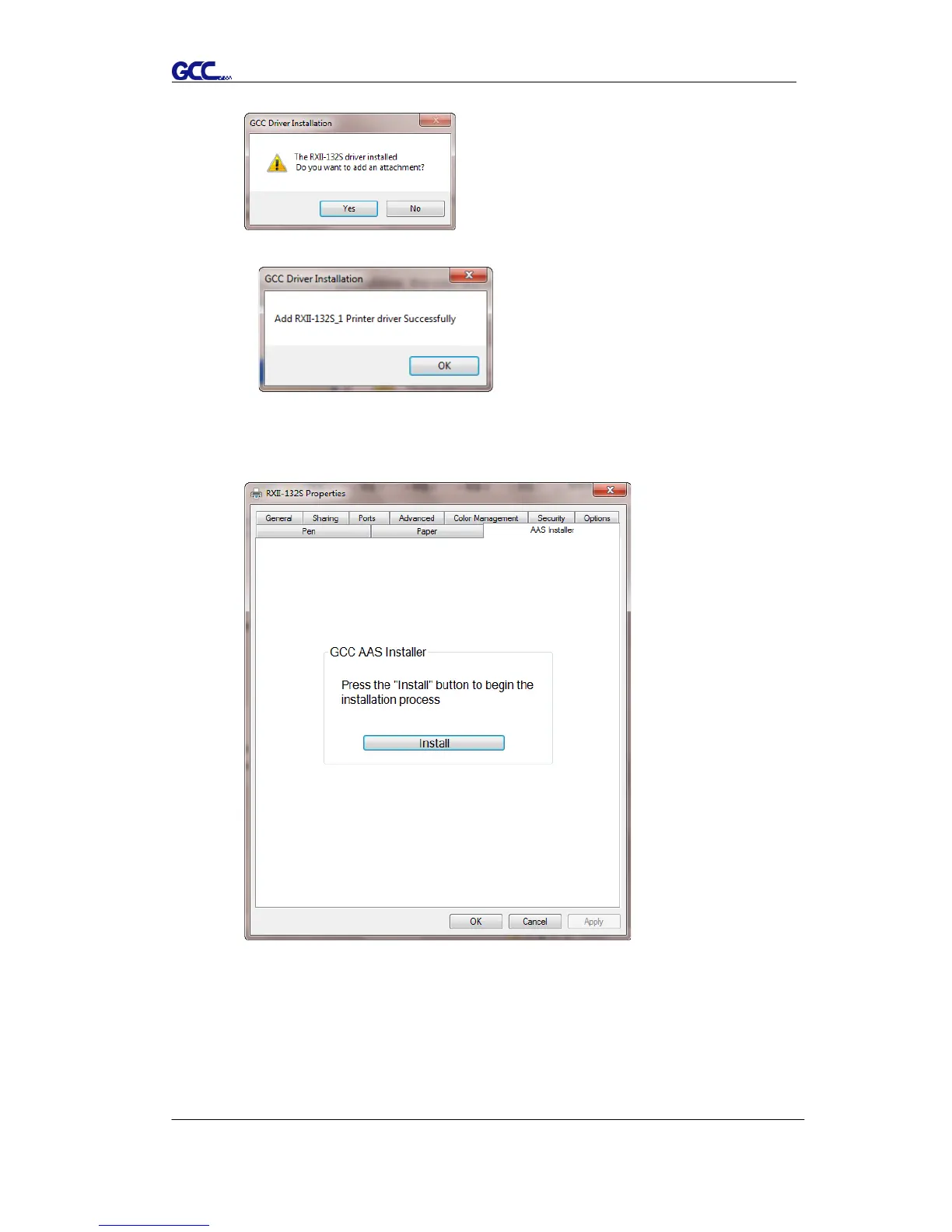 go to the AAS Installer page in the Printer Properties window and