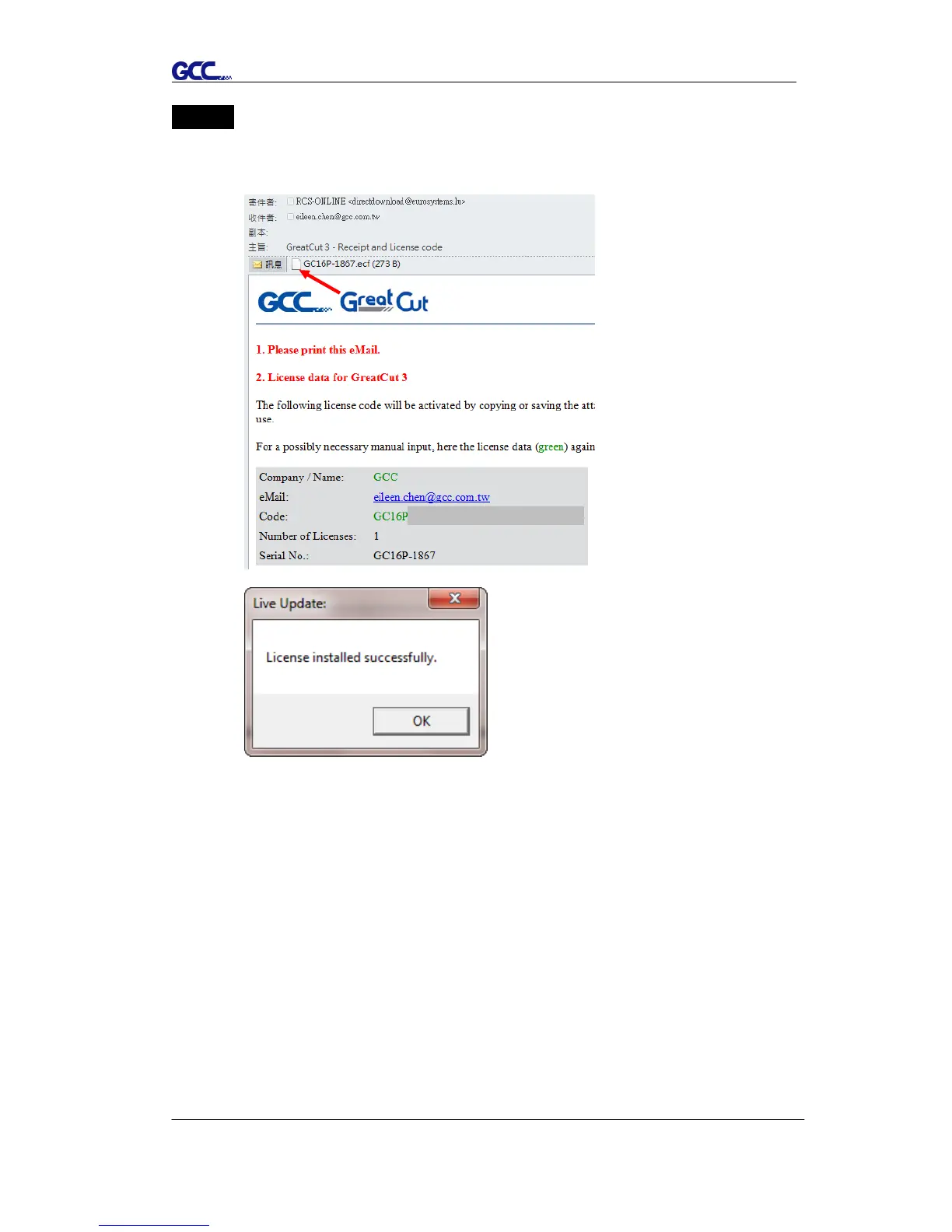 email to install your license data to GreatCut so that you don’t need to