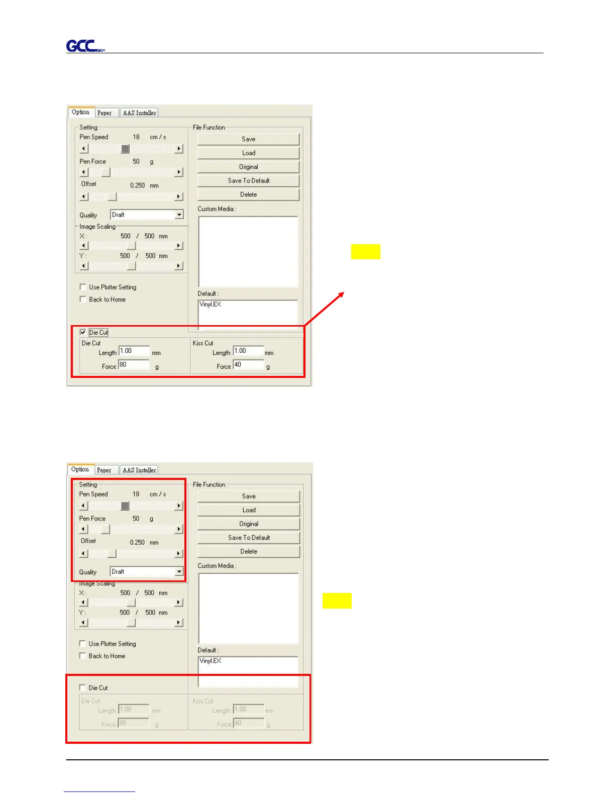 for the “Length” and “Force” of both Die Cut and Kiss Cut, then click “OK” (see figure 3).