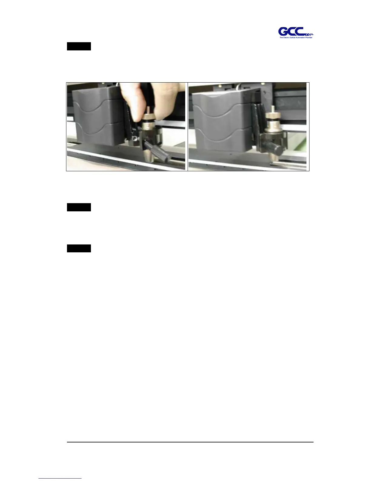 Insert the blade holder into tool carriage. Please note the outward ring of the holder must