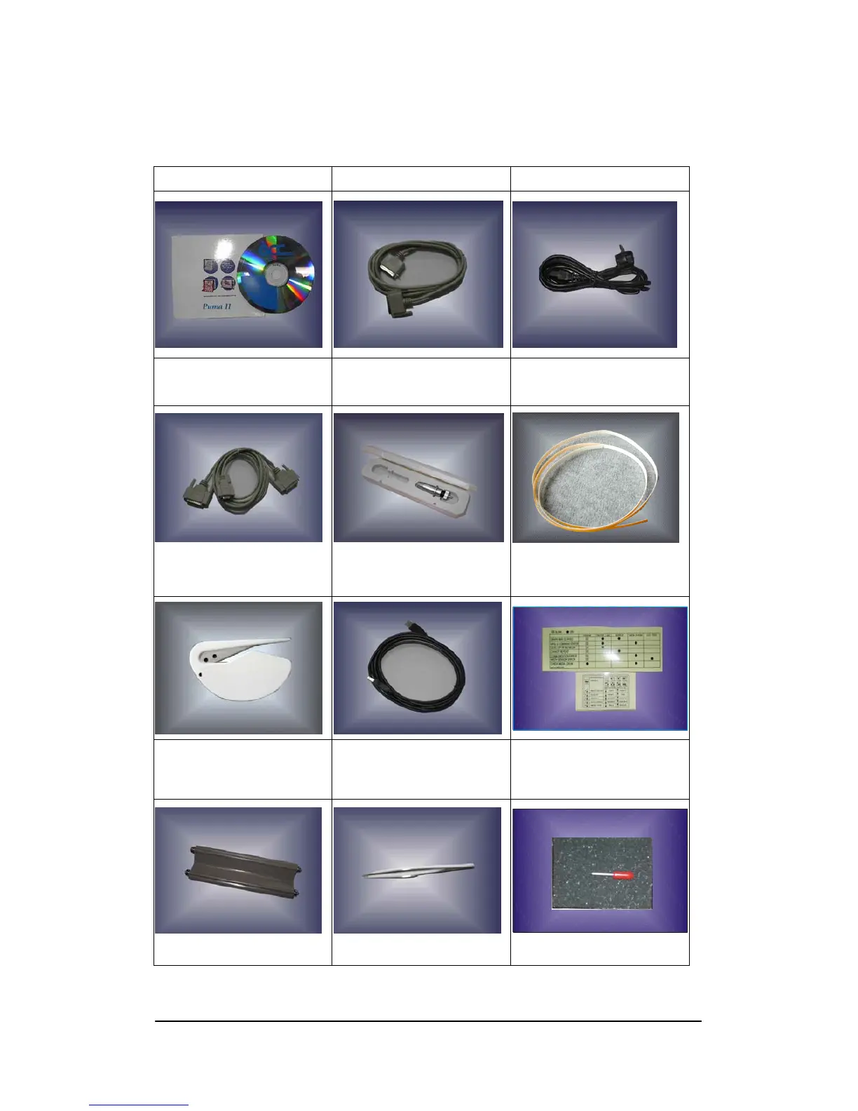 4. RS232 Cable 5. Blade Holder & Fiber –