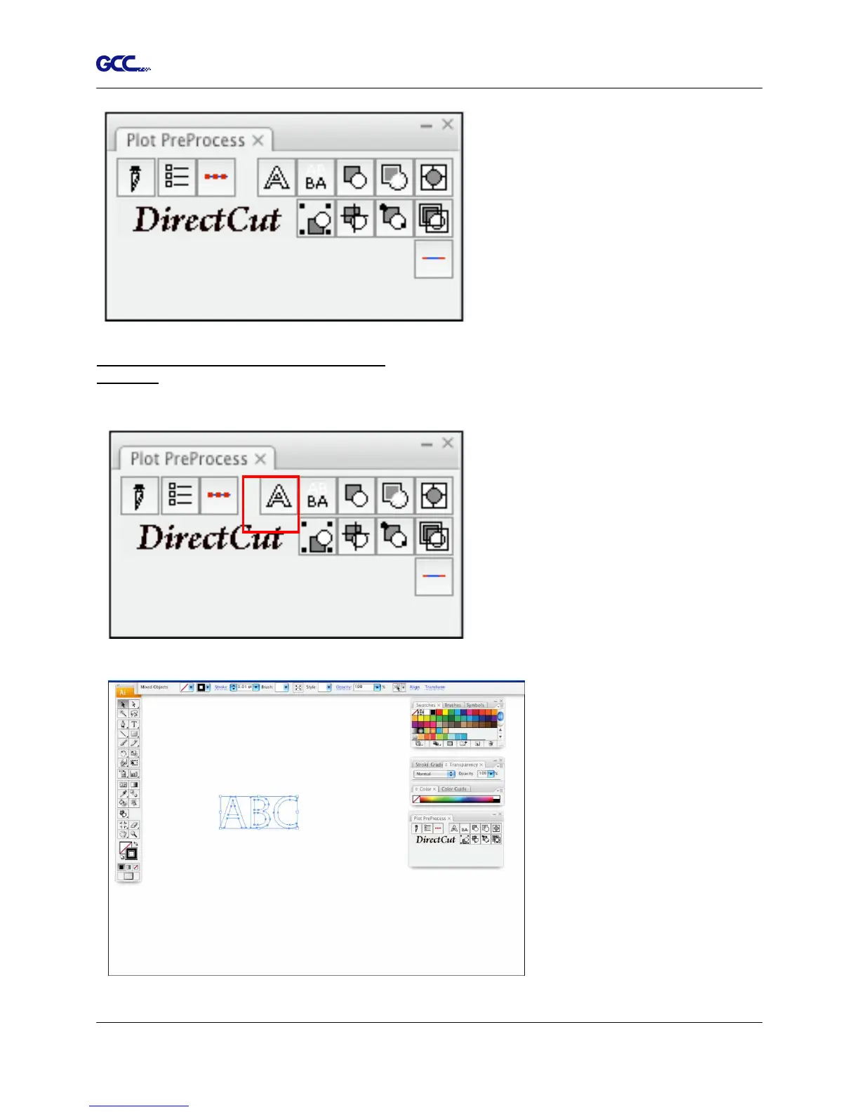 1) Enter your texts in Adobe Illustrator, select the letters and click [Text outline] to outline the