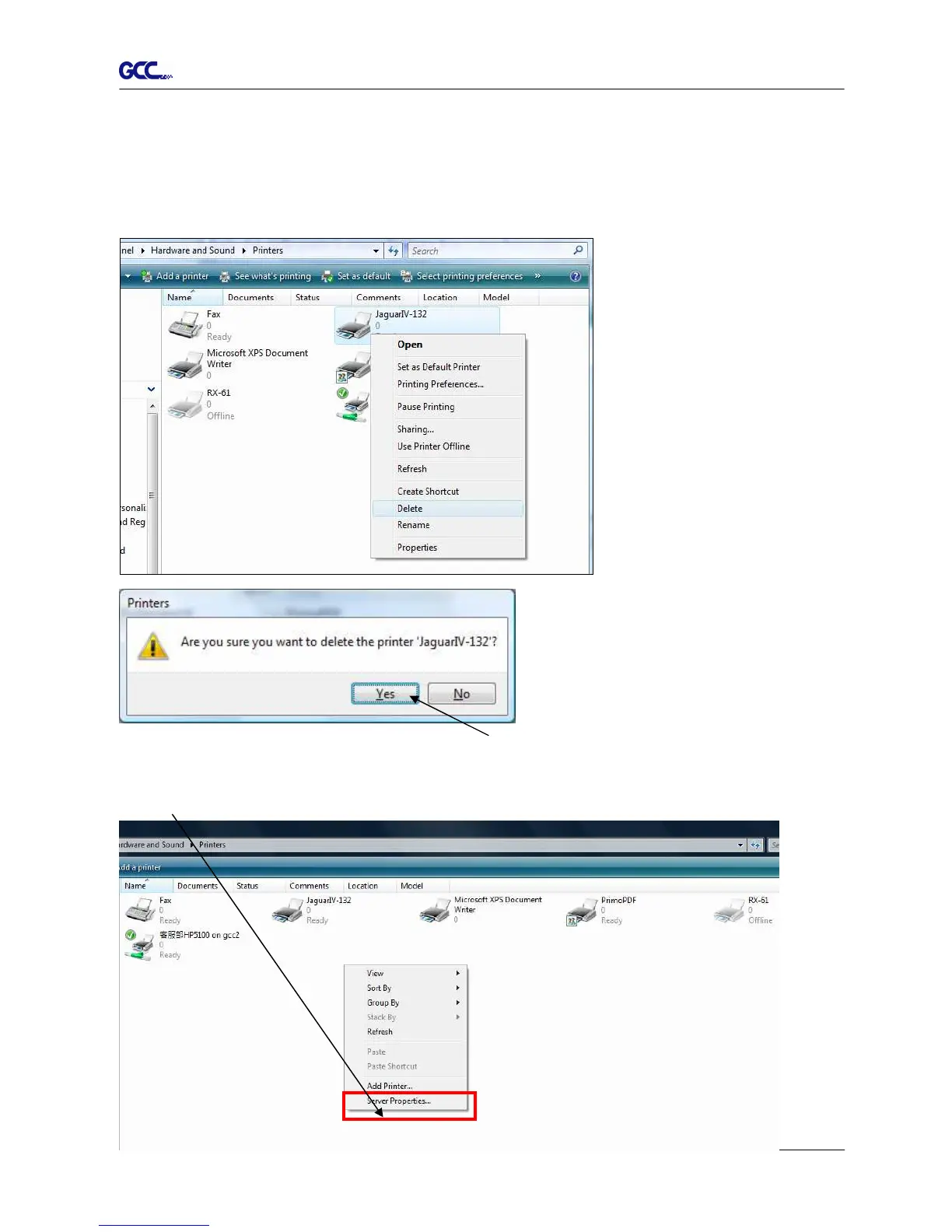 1. Right click on the printer to remove the printer from system Printer page.