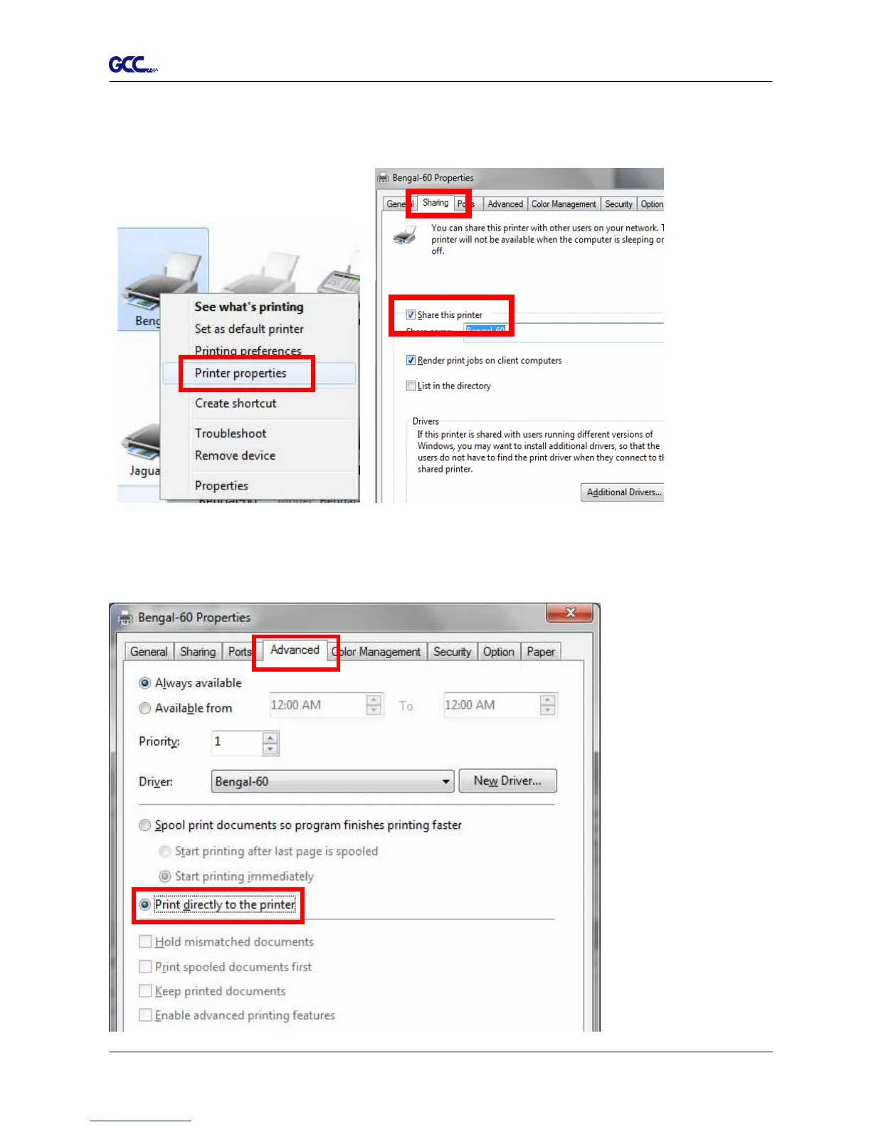 Click “Advanced” tab, then choose “Print directly to the printer” option.