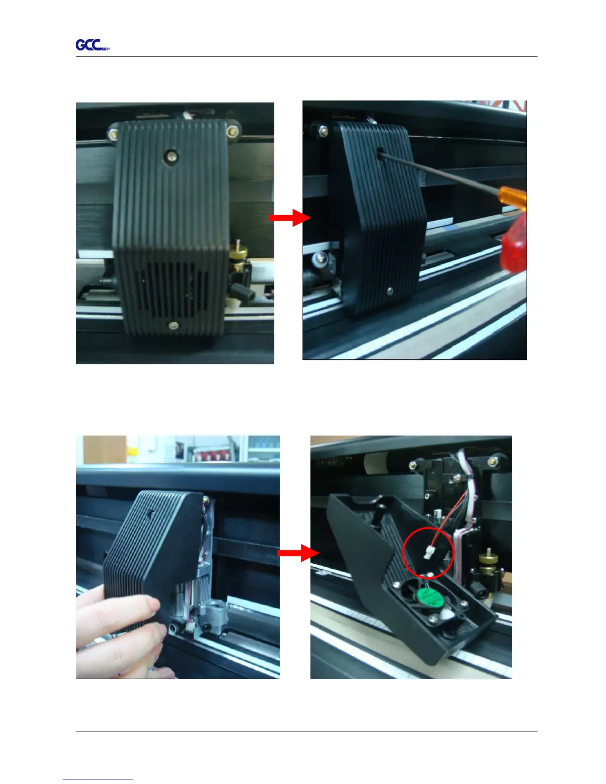 Step 1 Unscrew the Cover from the Tool Carriage using a screw driver (Figure 2-31 and 2-32).