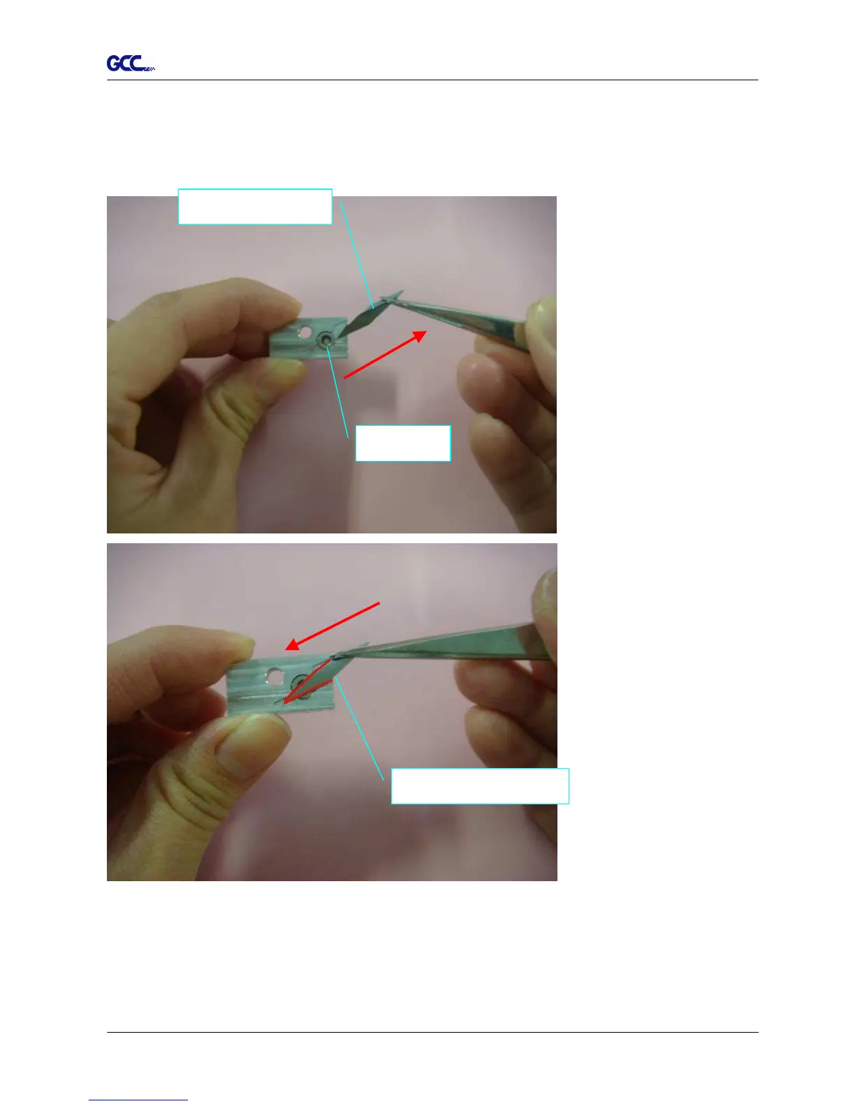 magnet on it, and replace it with a new Cut-off Blade along the track highlighted in red using
