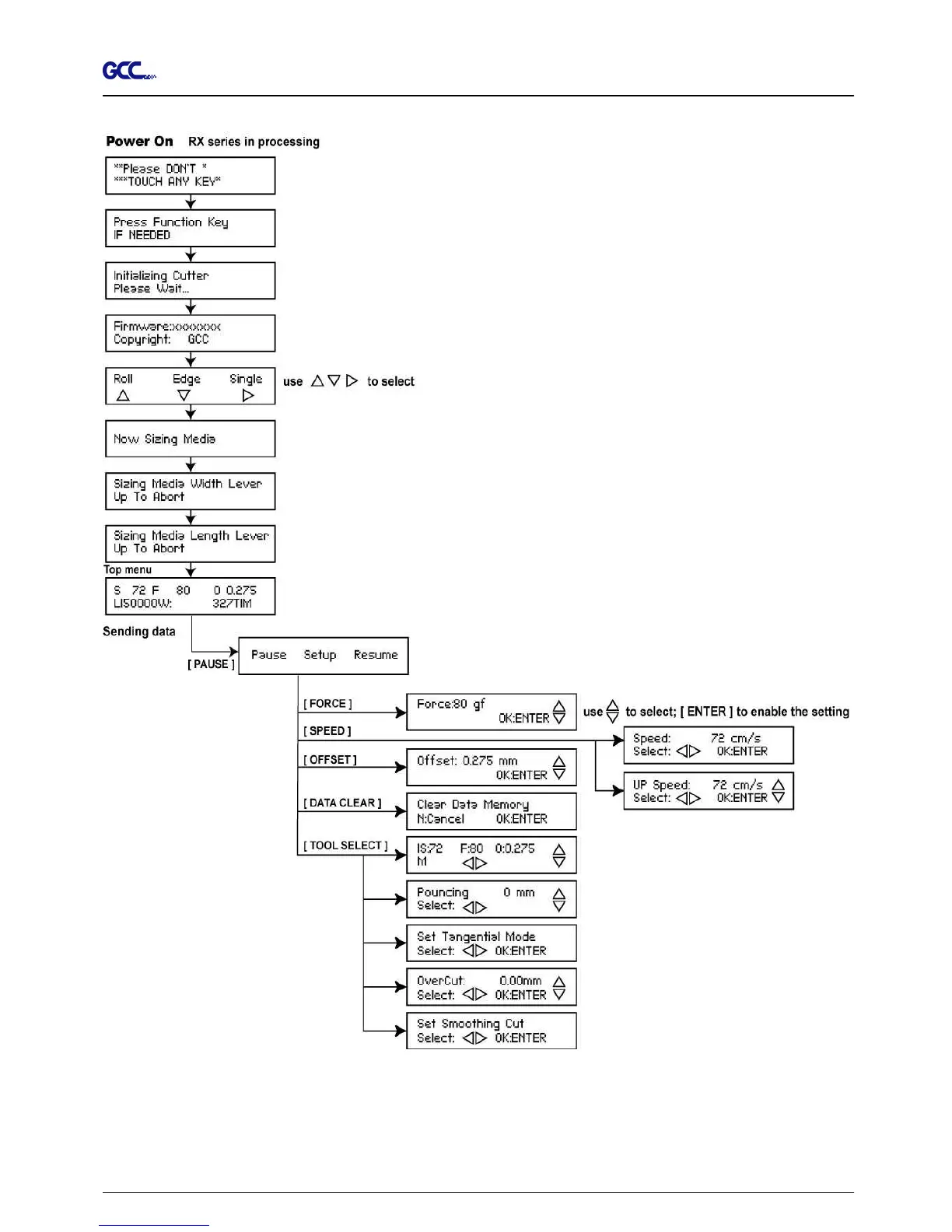 GCC Technologies RX Series - Menu in On-Line Mode