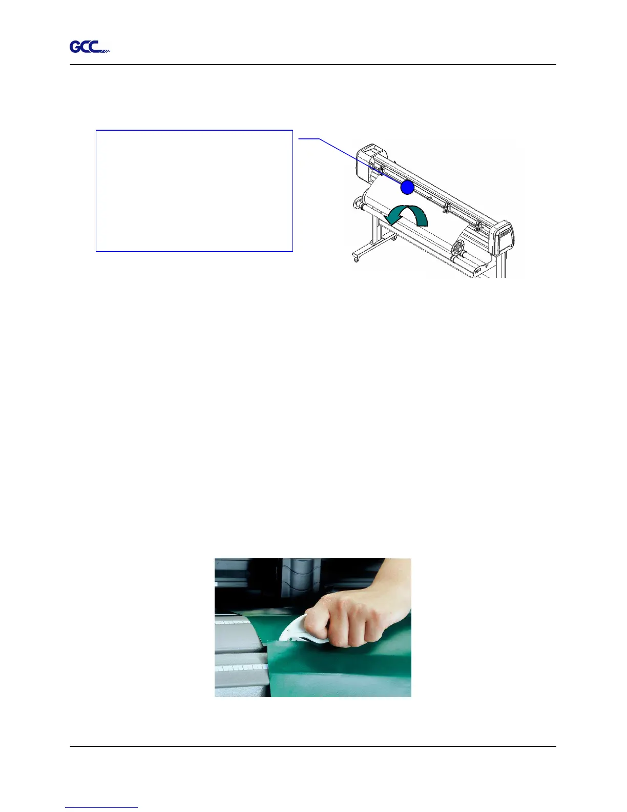 then press the “CUT OFF” button on the control panel. The material will be cut off automatically.