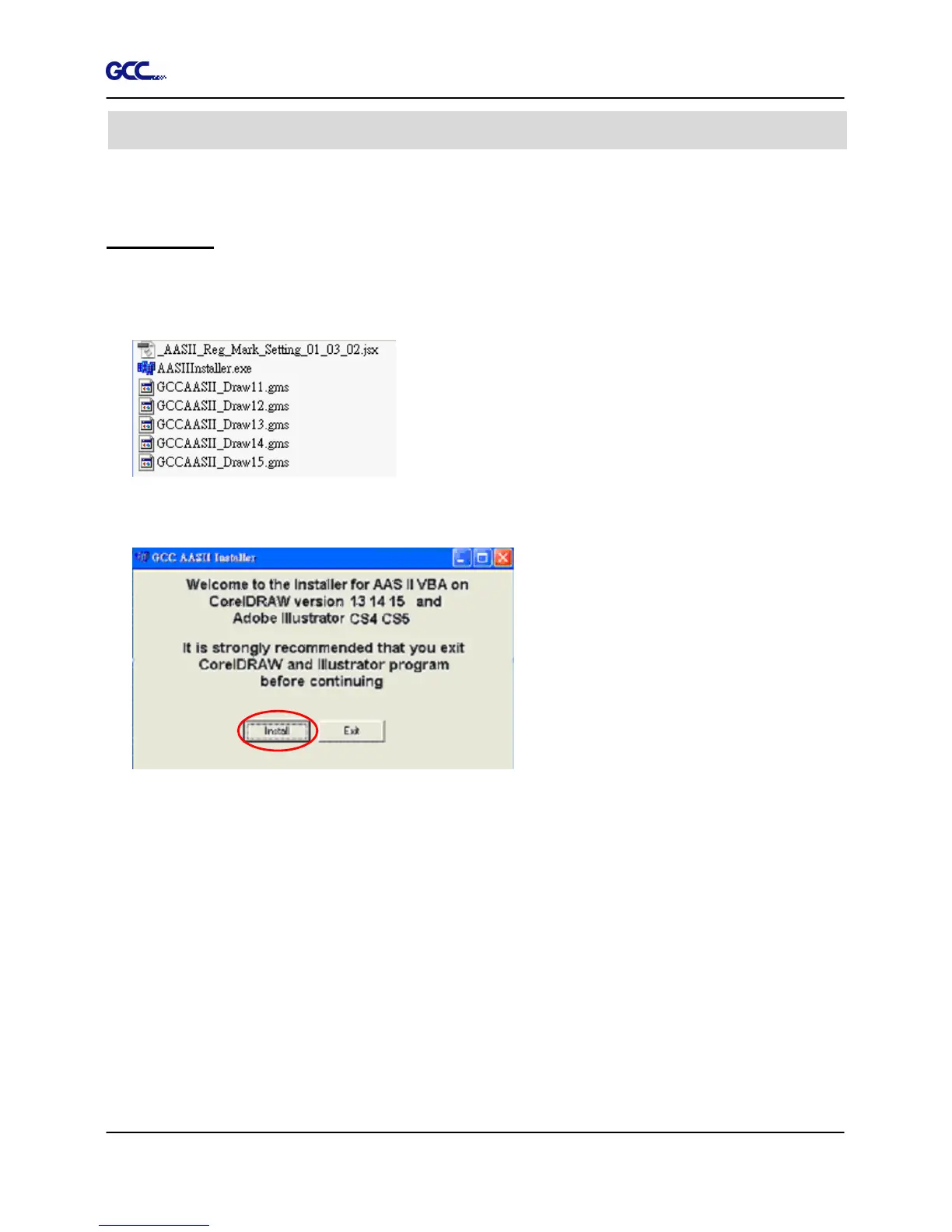 2. Press the “Install” button to begin installing GCC AASII CorelDRAW VBA.