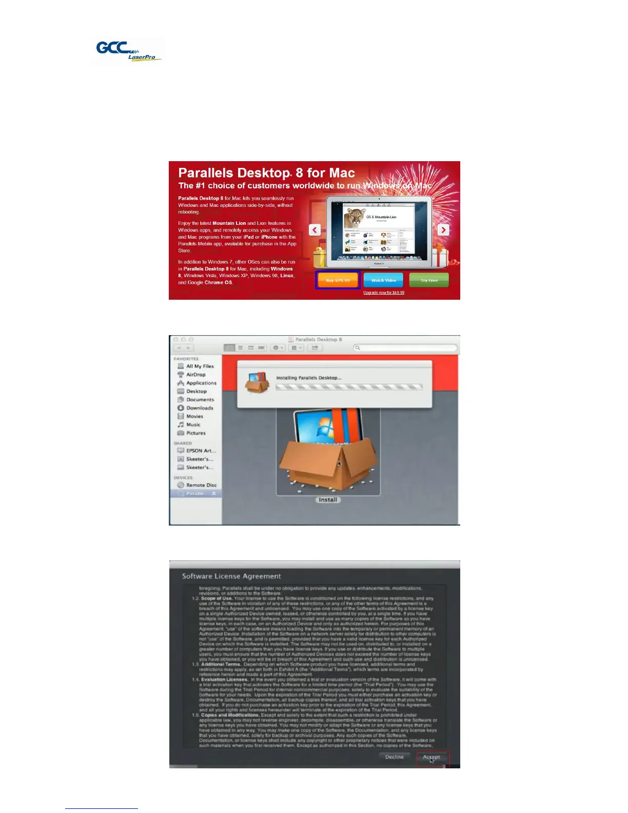 MAC users can use GCC LaserPro machines by purchasing the Parallels Desktop software