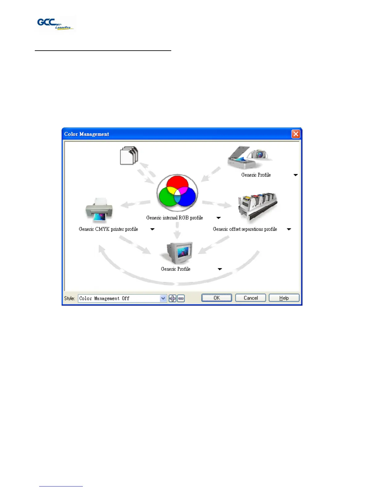 2) Under the Style pull down menu, select COLOR MANAGEMENT OFF.