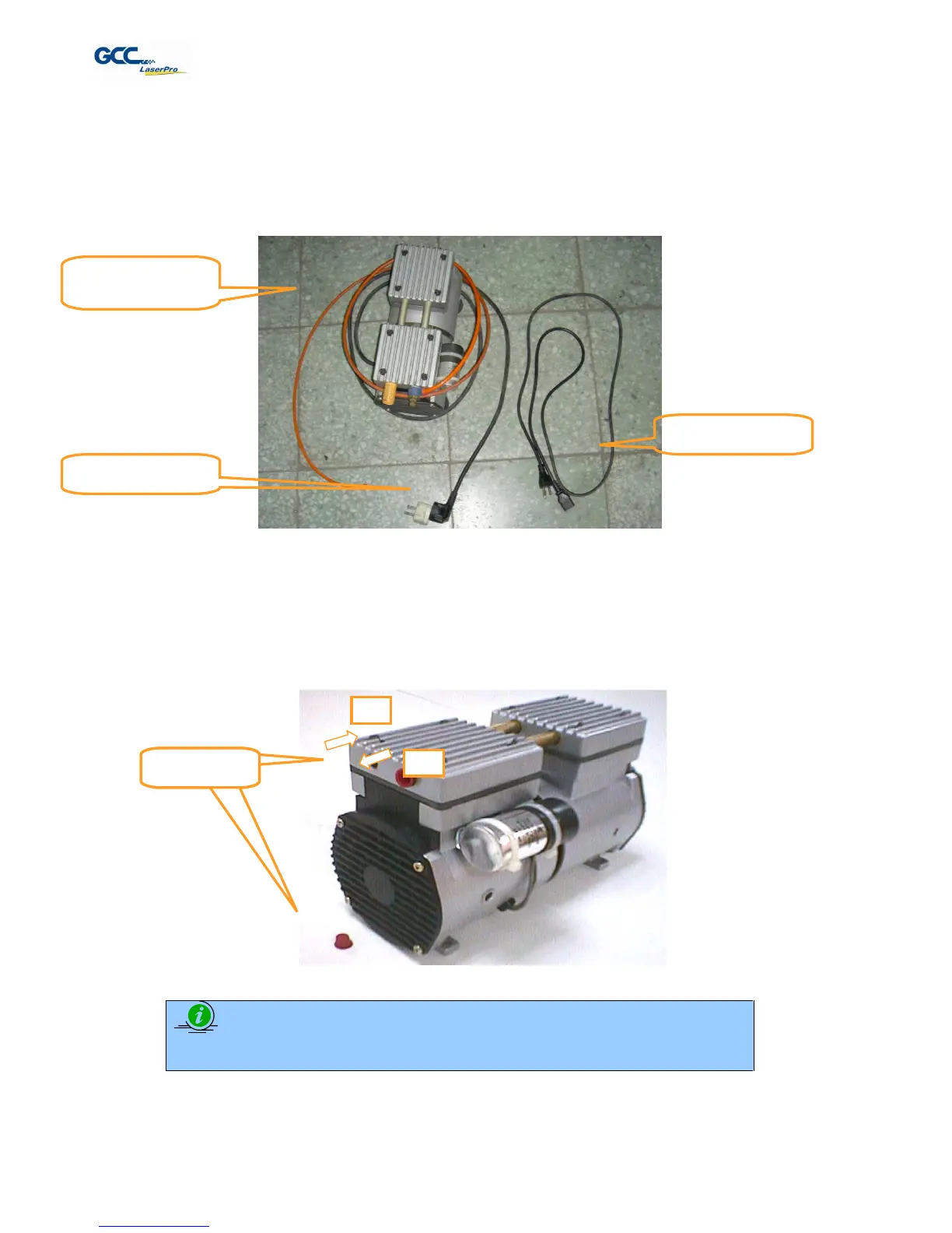 1) Remove the plugs on the air compressor to expose the air inlets.