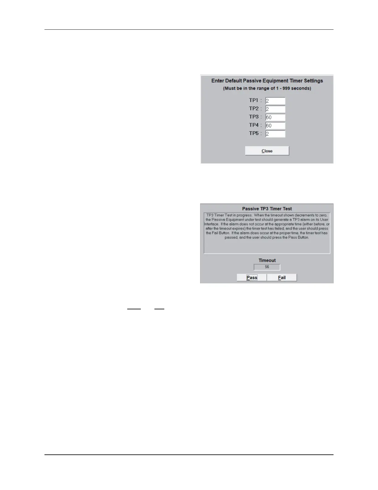 example, when testing passive equipment timeout