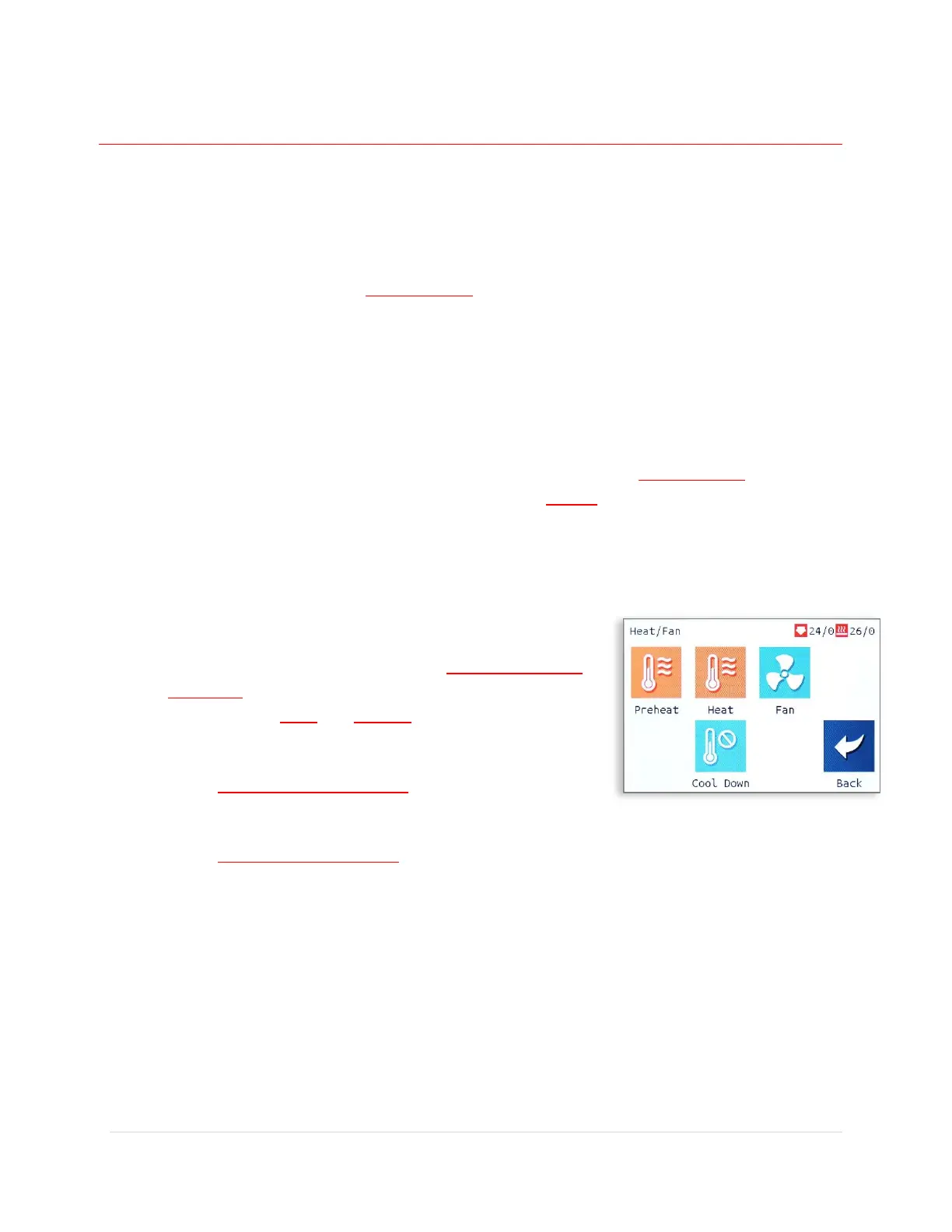 • Go to “Menu > Heat/Fan > Heat” or just click the nozzle