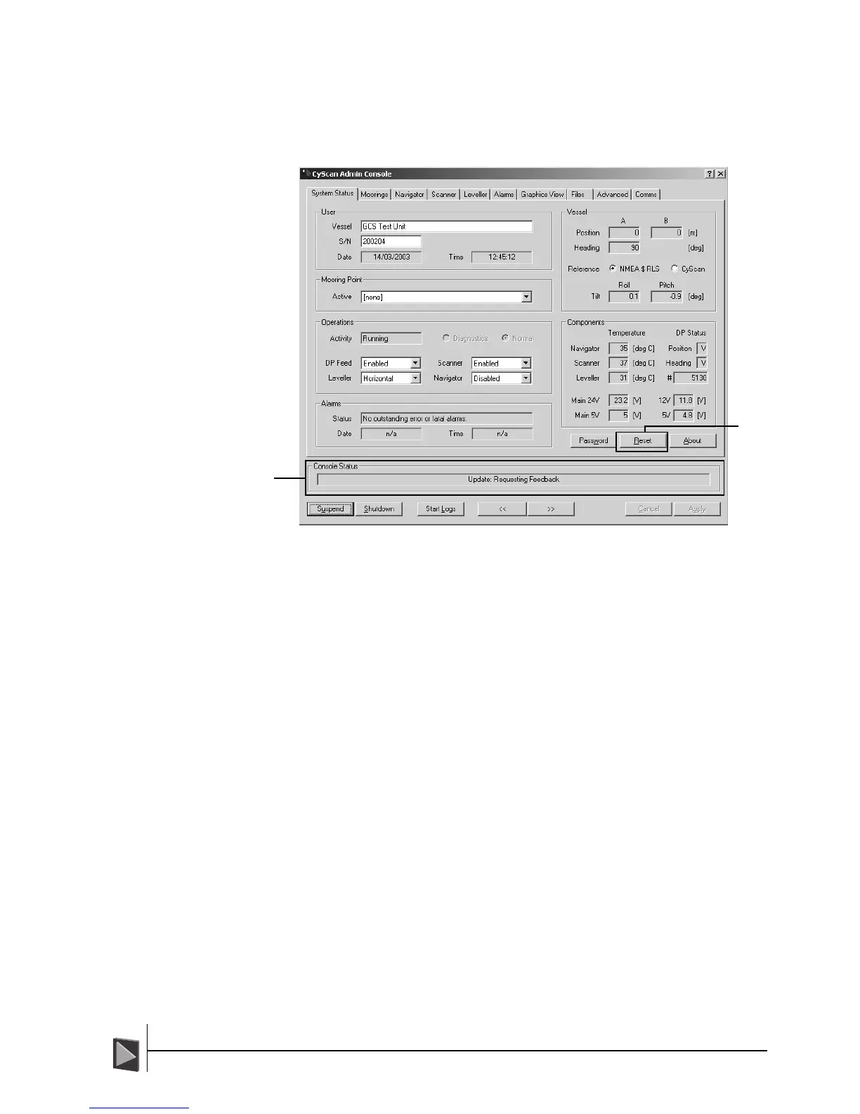 2 The Comms link status can be checked and tested by toggling the Reset button in
