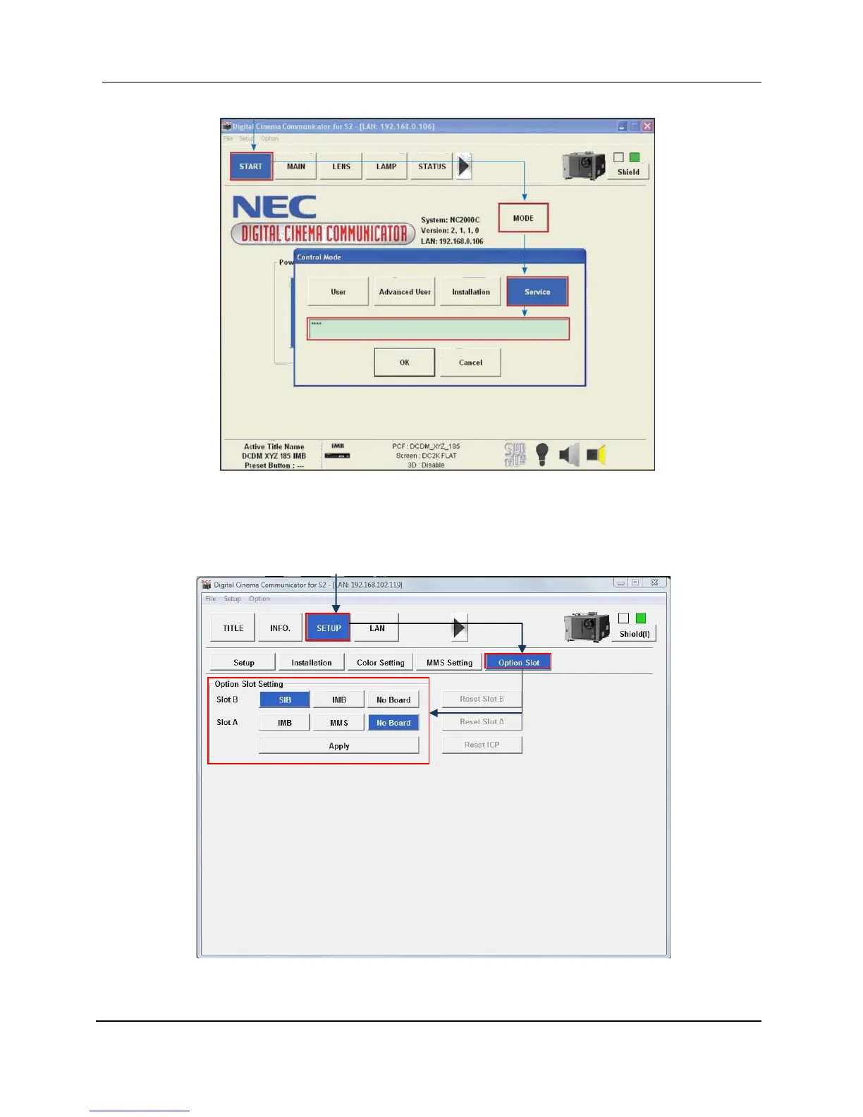 Figure 30 Option slot settings on NEC Digital Cinema Communicator