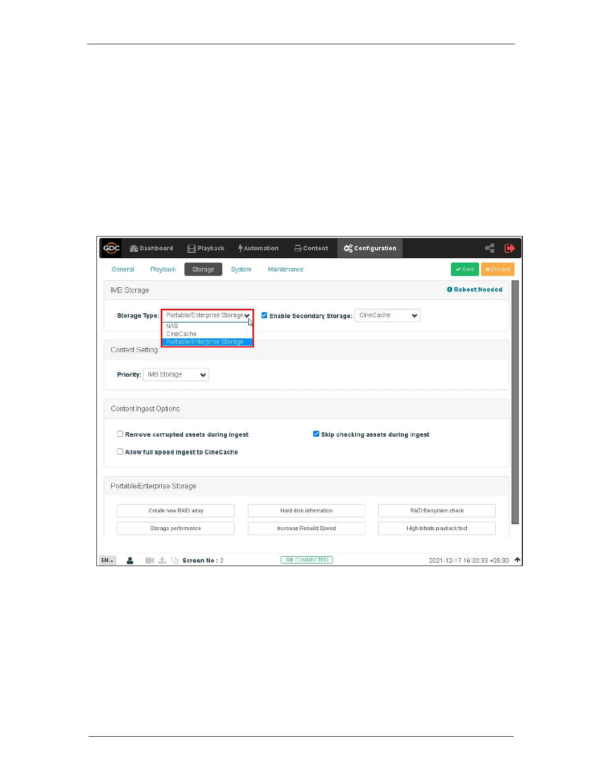 • Portable/Enterprise Storage: Configure the SR-1000 to use Portable or Enterprise Storage