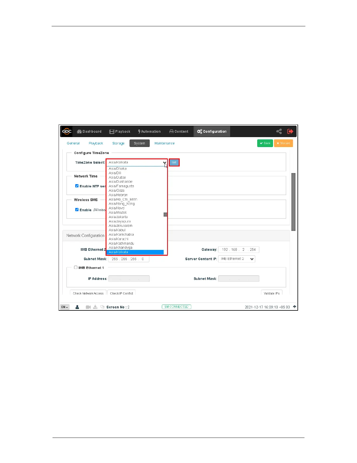 3. Select the Region/City in the dropdown menu of TimeZone Select.