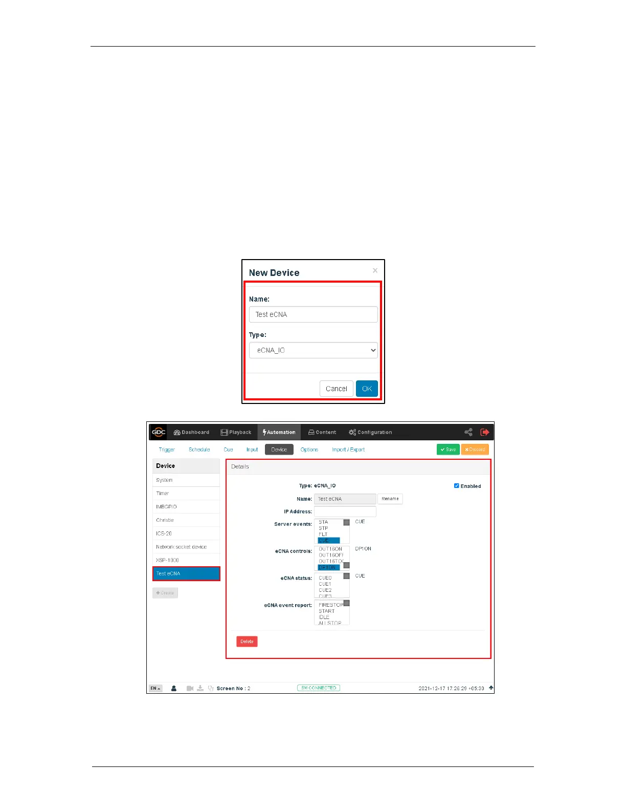 3. Select eCNA_IO as the device type. Enter the name of the eCNA device and click OK.