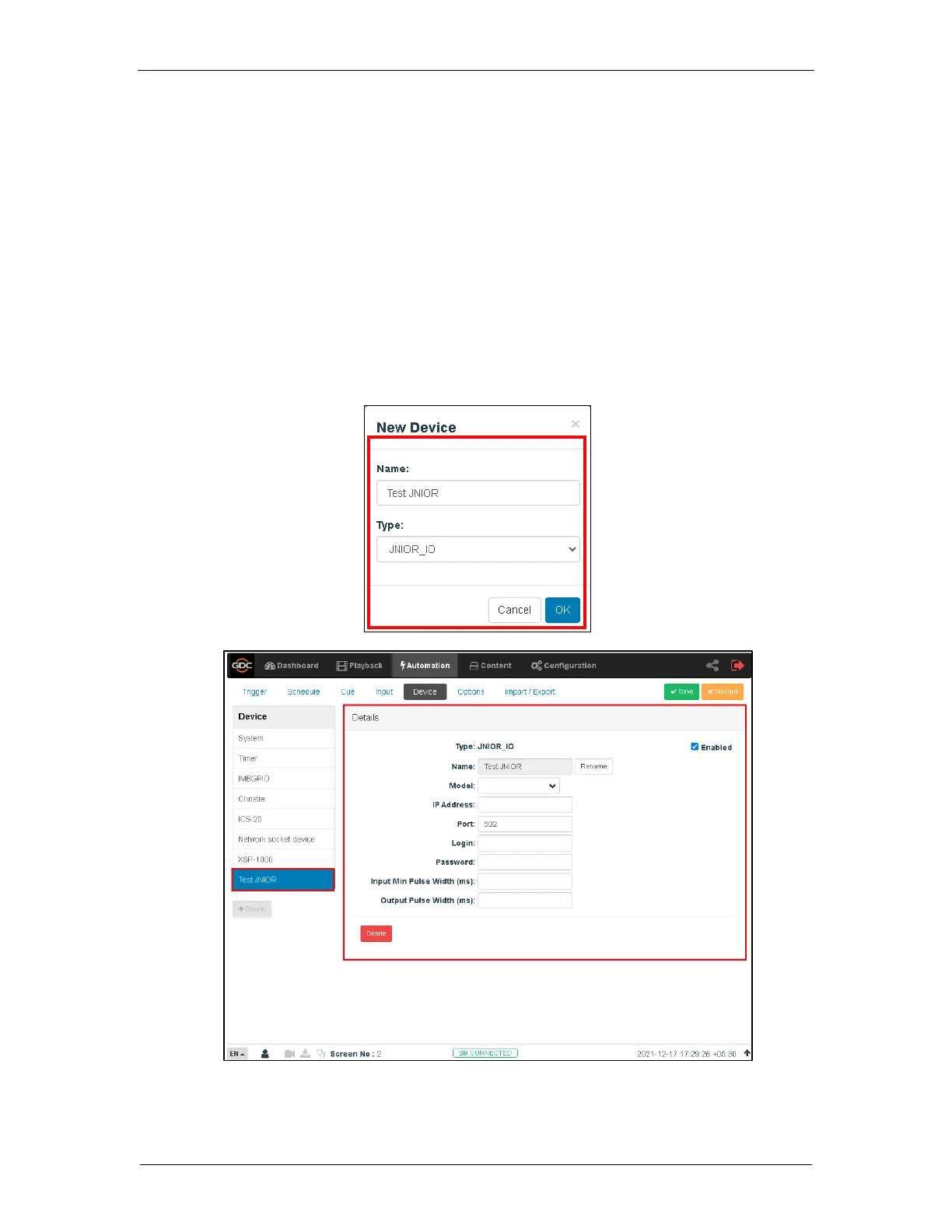 3. Select JNIOR_IO as the device type. Enter the name of the JNIOR device, and click