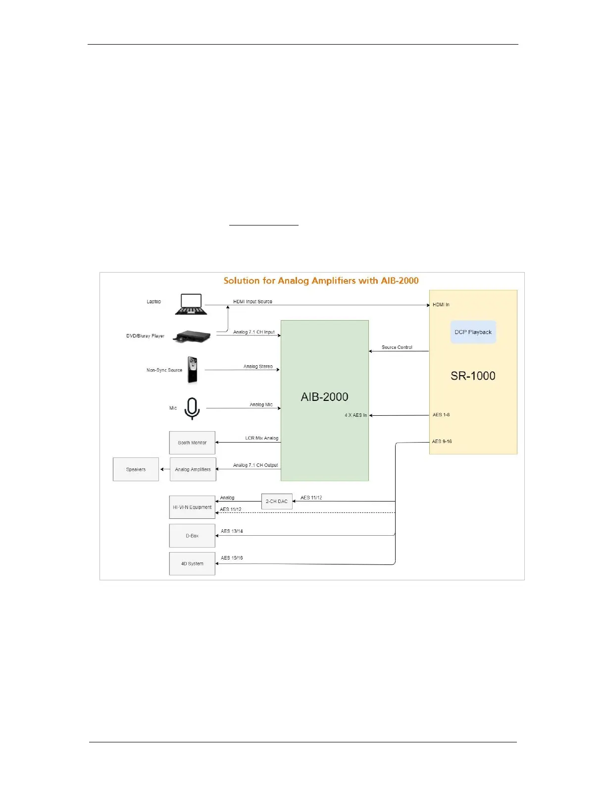 the AIB-2000 and converted to analog outputs which can be interfaced with analog audio