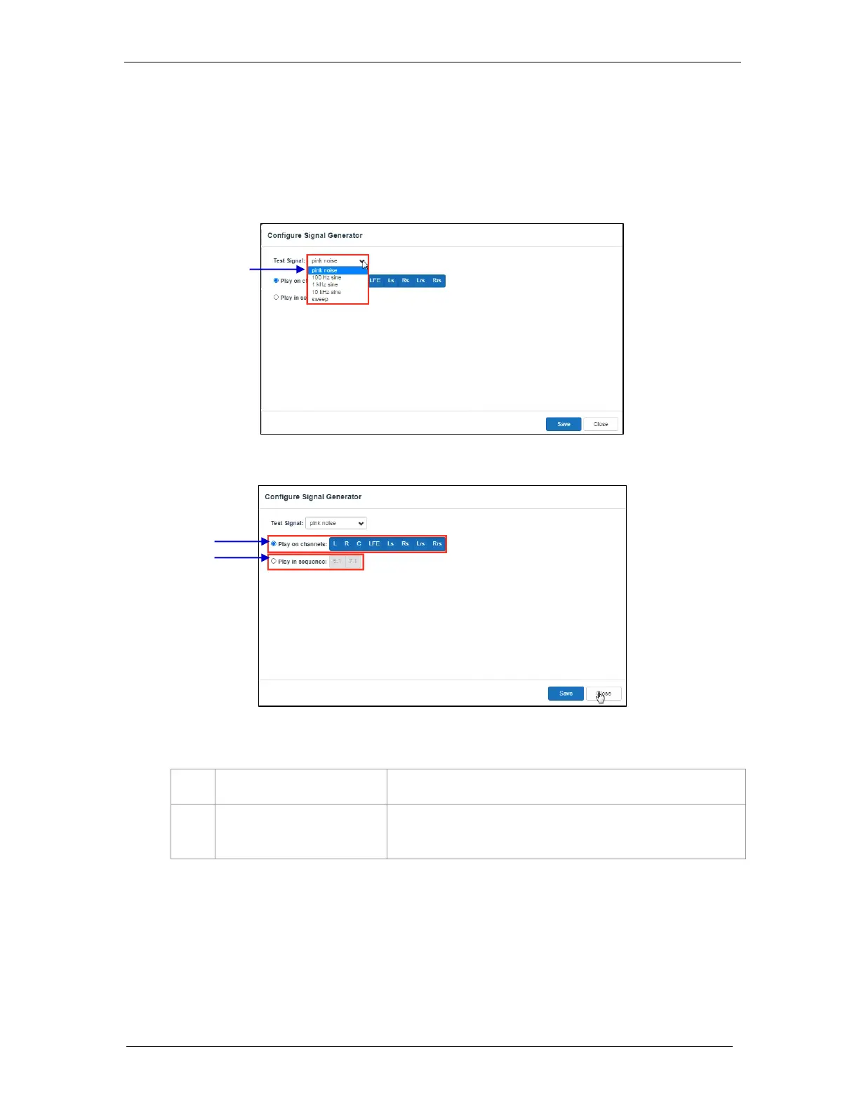 Note: The Signal Generator operation and playback cannot be done at the same time.