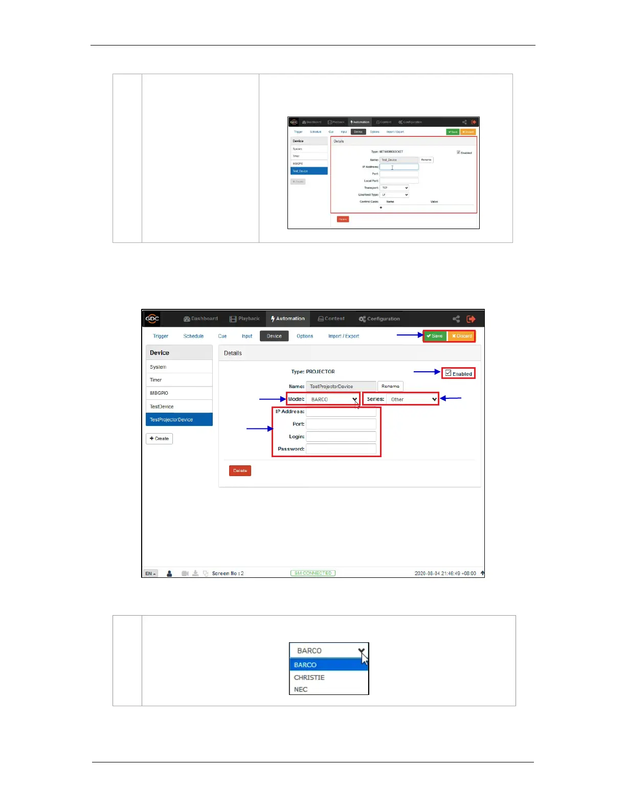 GDC SR-1000 - 5.5.1.1 When Device Type is ‘PROJECTOR’
