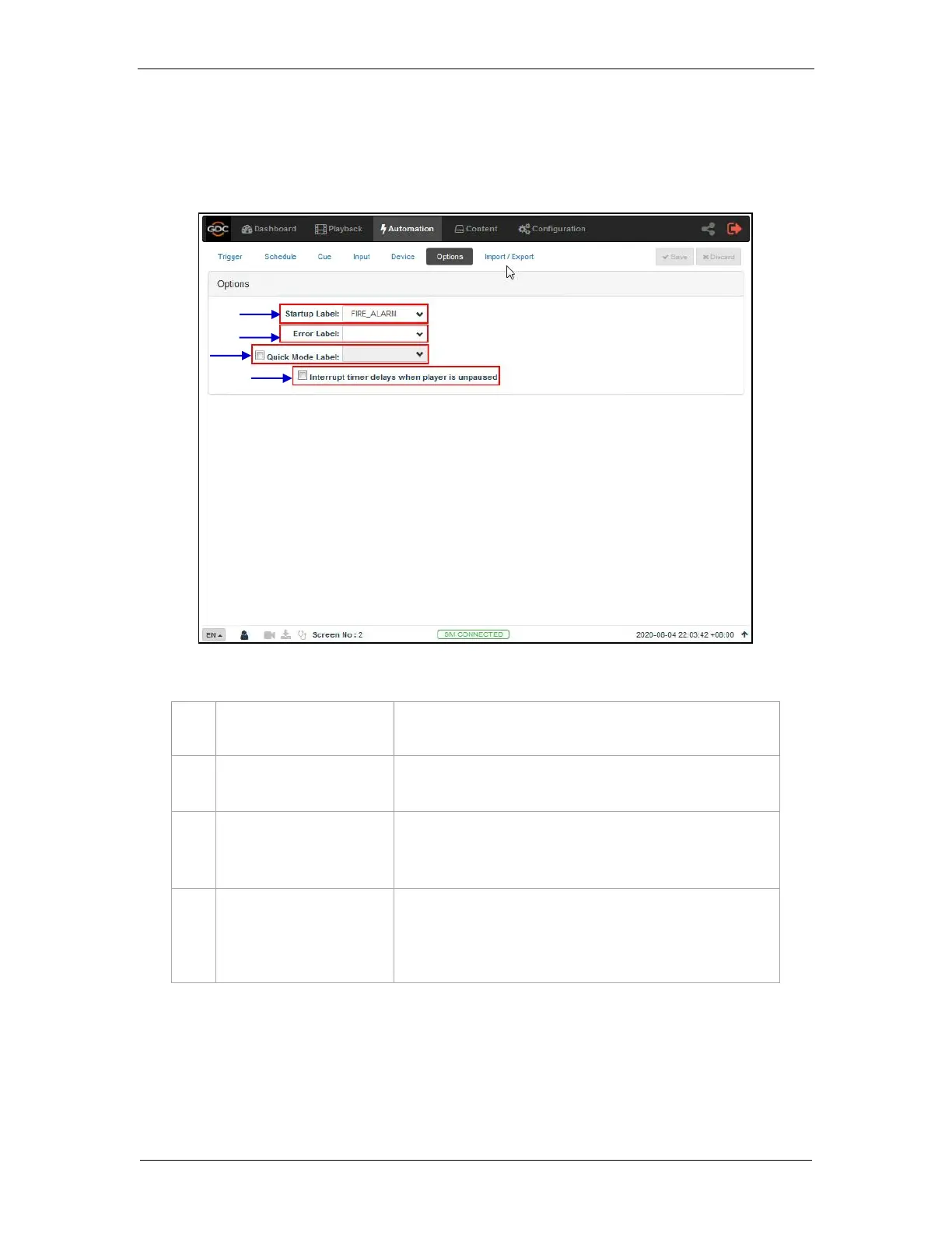The Option sub-tab is used to configure automation cues that will be triggered on SR-1000