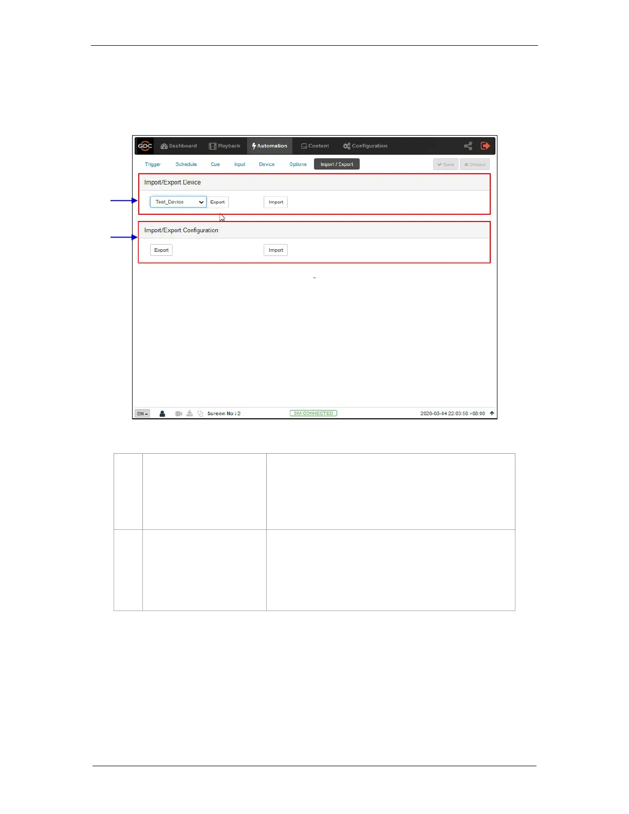 This Import/Export sub-tab allows the import and export of automations cues which have been
