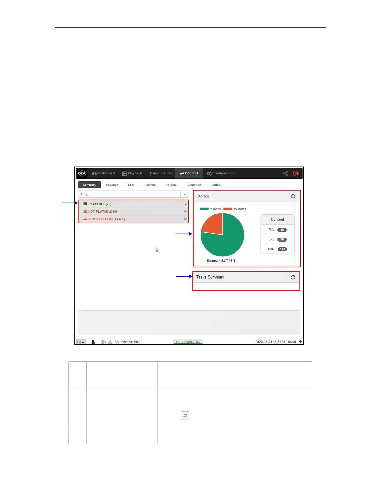 The Content tab is used to manage the content, keys and licenses on the SR-1000. It allows the