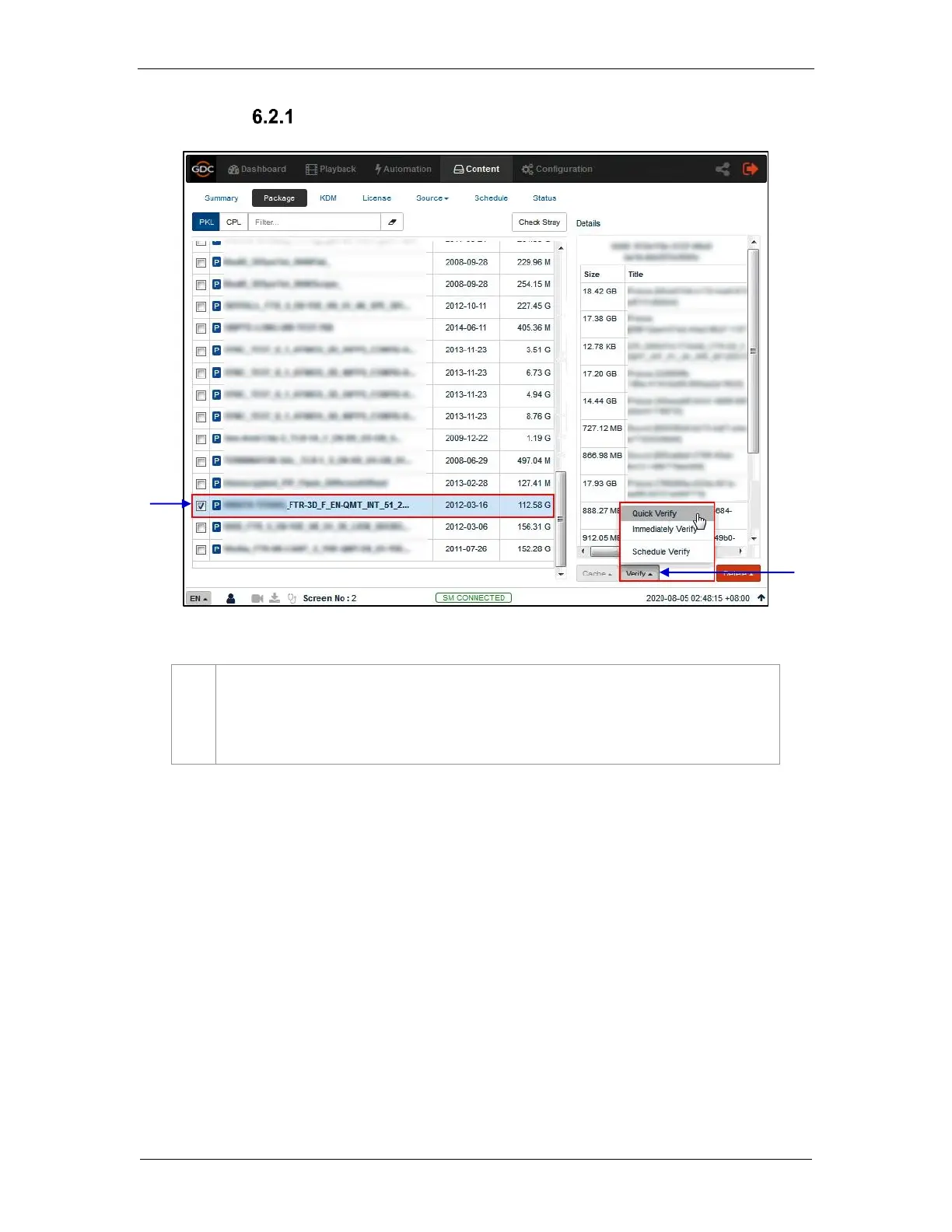 against the package or CPL that needs to be verified. The PKL/CPL details will be displayed under