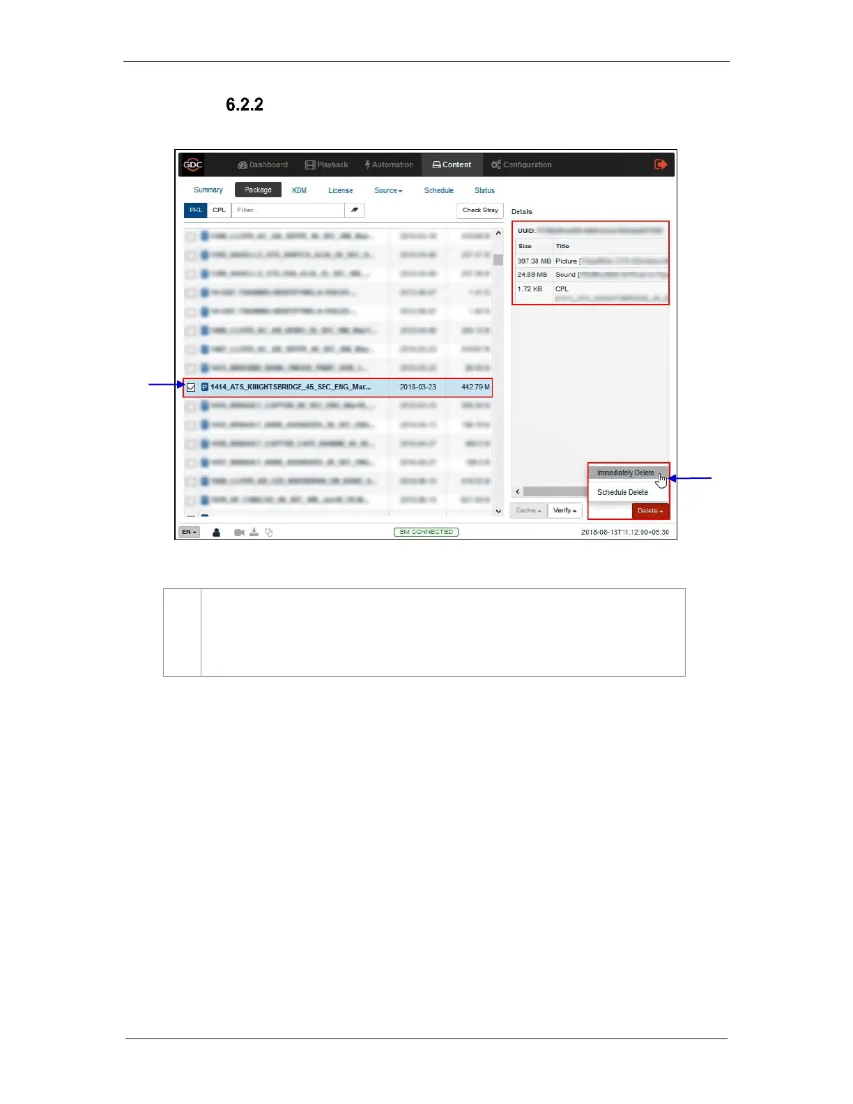 package or CPL that needs to be deleted. The PKL/CPL details will be displayed under the