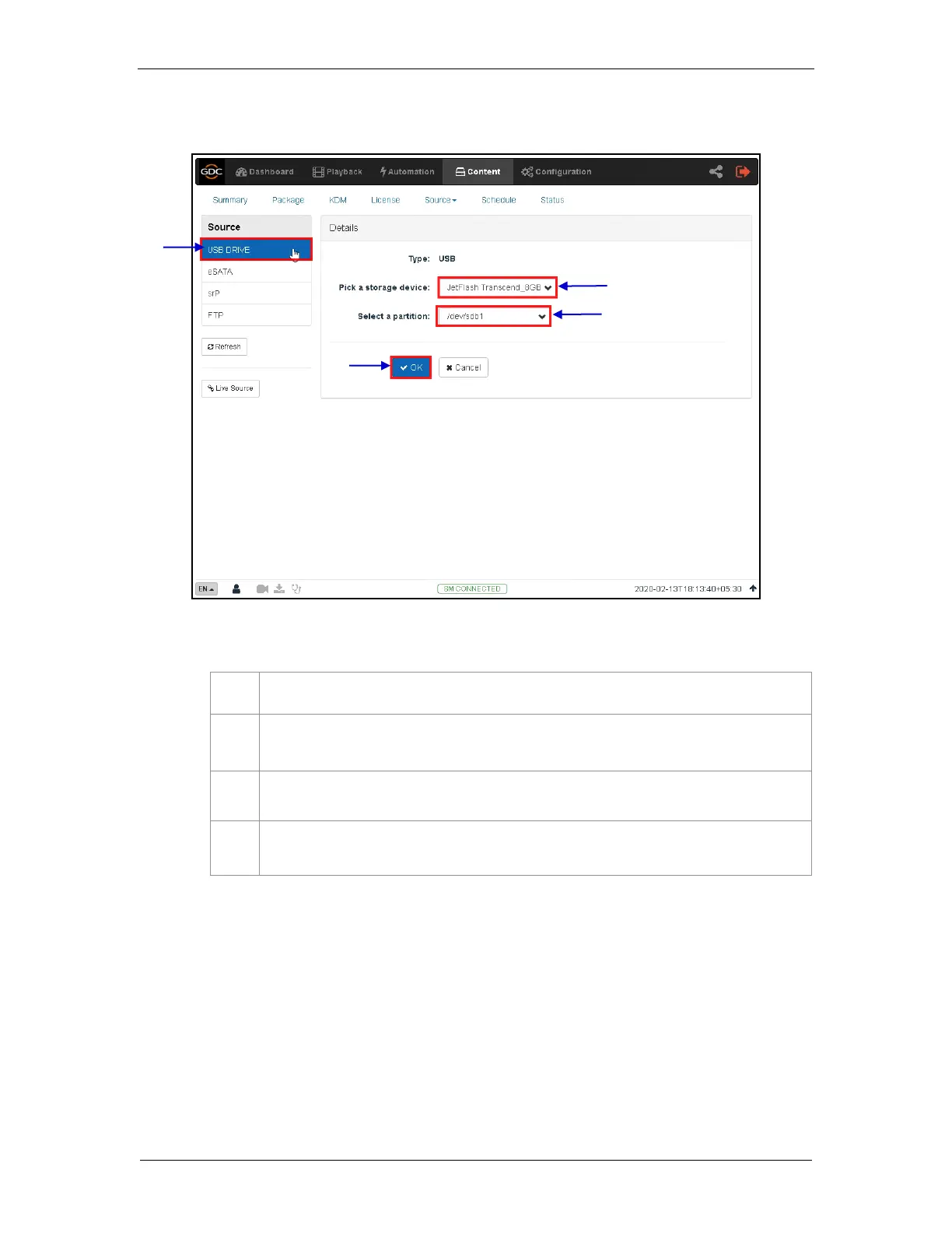 GDC SR-1000 - 6.5.1.1 Ingesting Content from a USB Drive