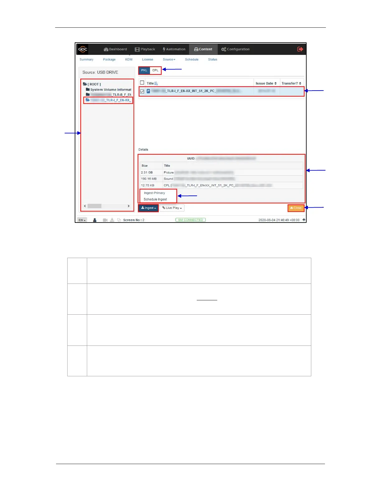 Select the package or CPL you wish to ingest using the checkbox on the left of that particular