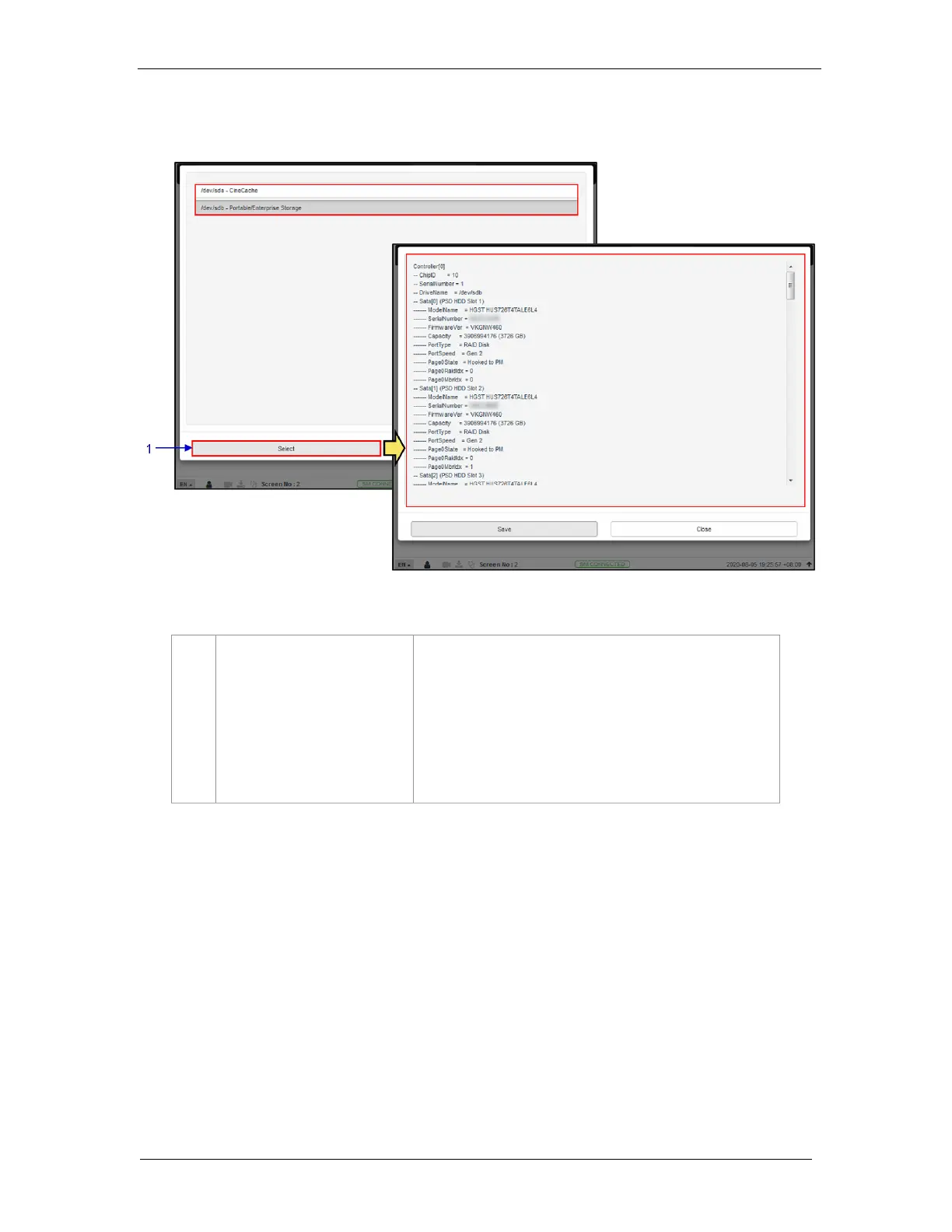 Click on Close to return to the Storage menu.