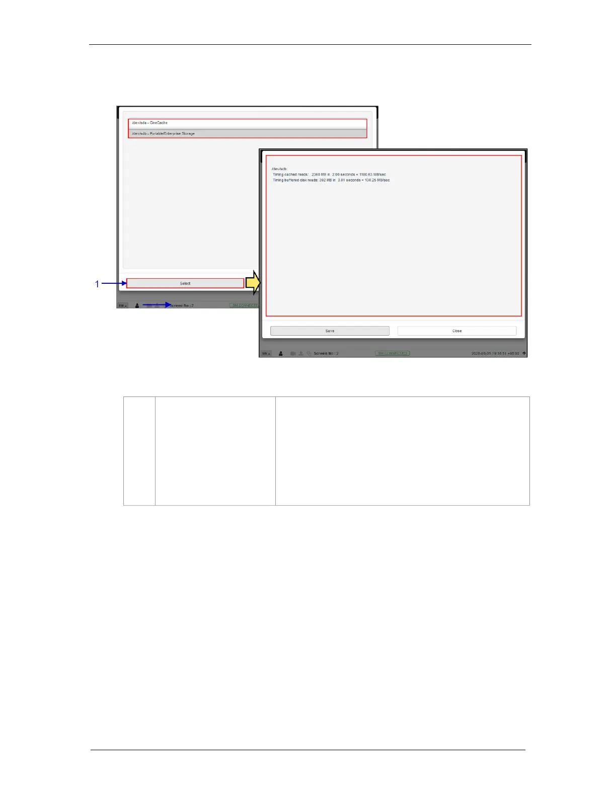 Clicking on the Storage Performance option opens a pop-up