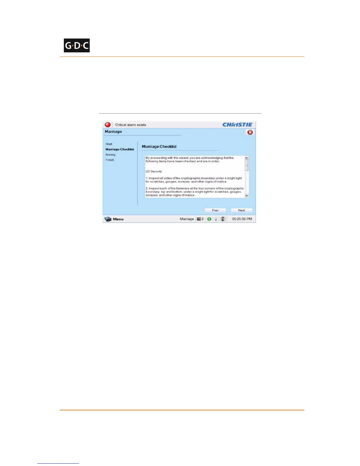 before proceeding. Click the [Next] button to proceed to the Arming window.