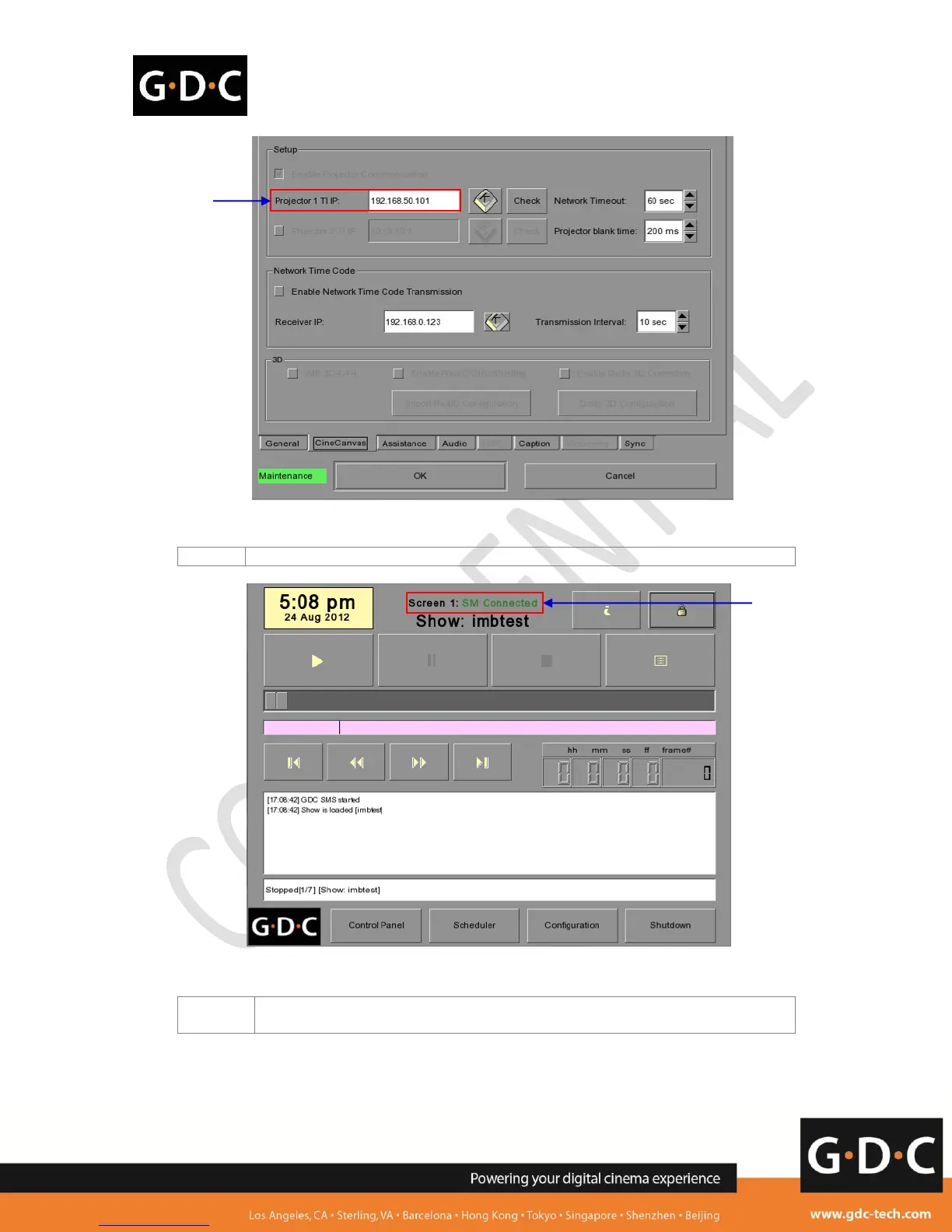Configure Projector 1 TI IP on server SMSConfigurationCinecanvas.