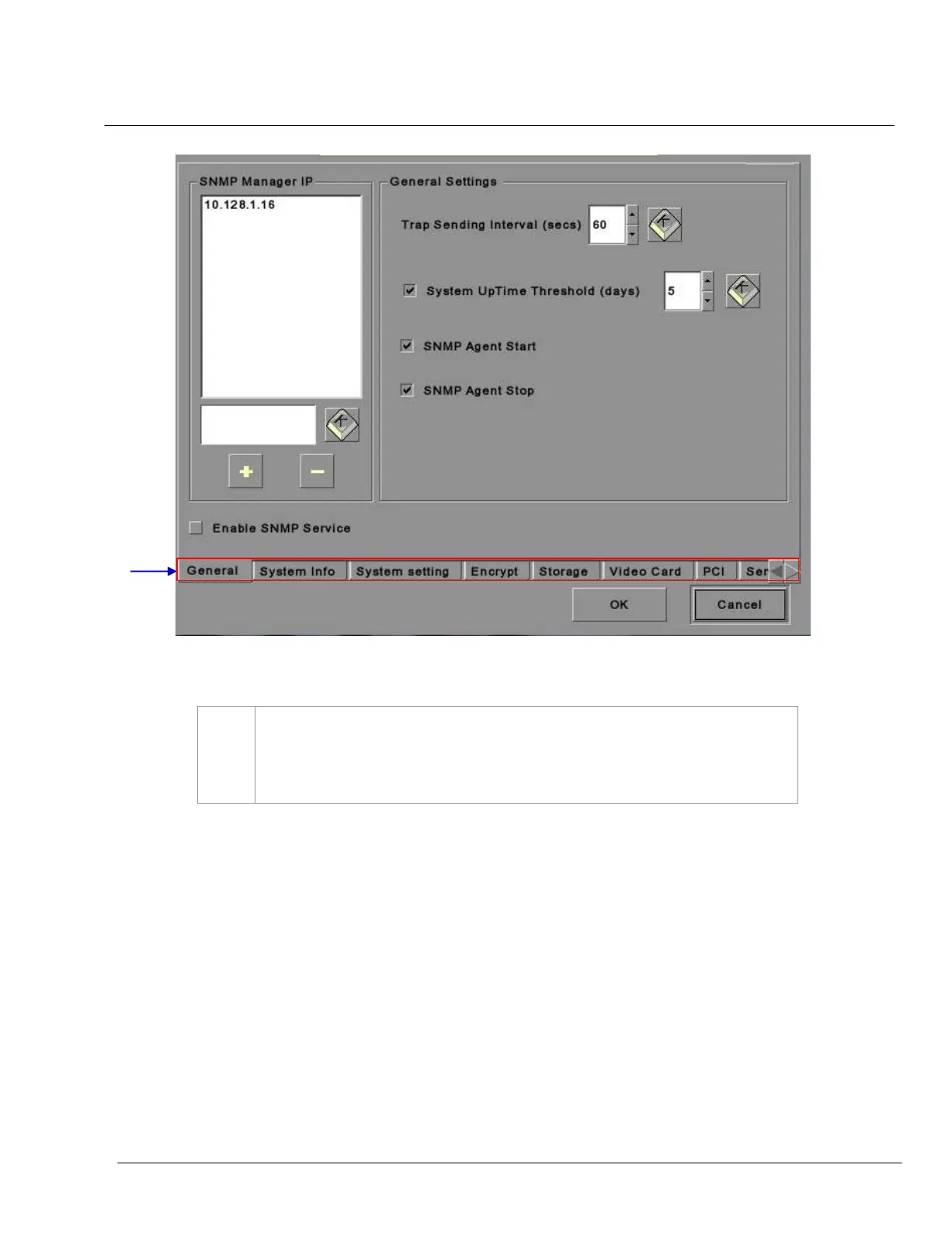 SNMP Configuration menu, there are several tabs along the bottom of the