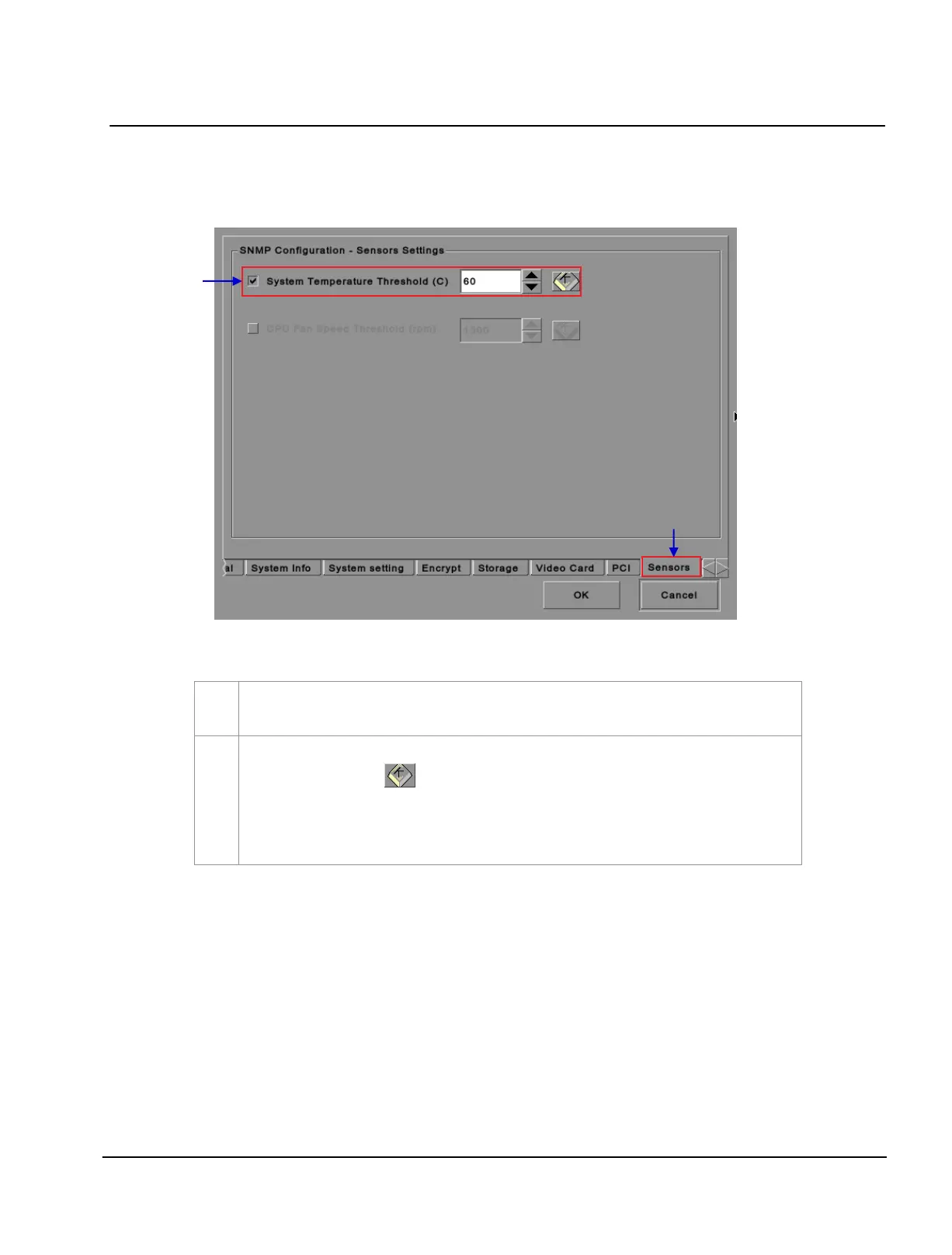 NOTE: When the Trap is On, a trap is sent if the system temperature exceeds the