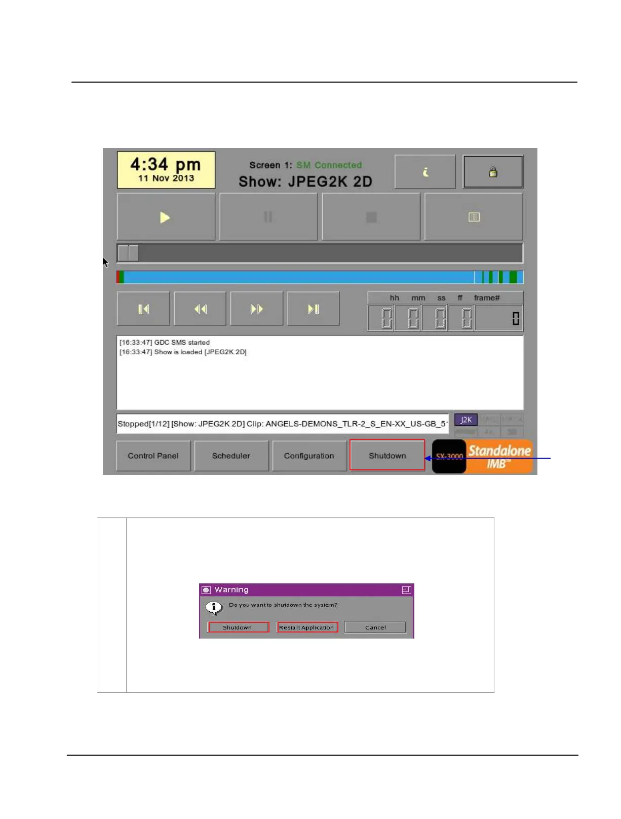 Main menu, when the Shutdown button is pressed, the system will prompt