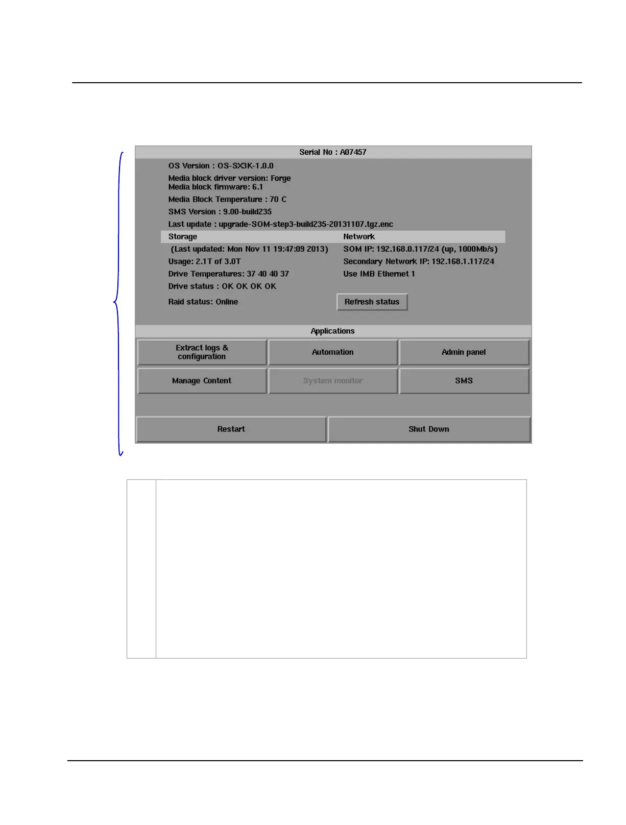 Automation button, Admin panel button, Manage Content button, SMS button, Restart