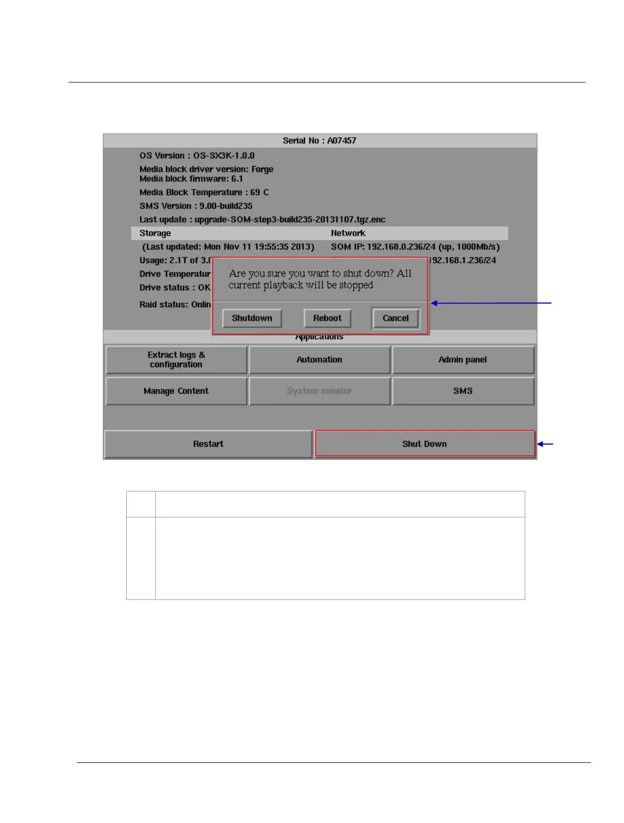 Cancel to cancel shutdown of IMB. All current playback will be stopped upon shutdown of the