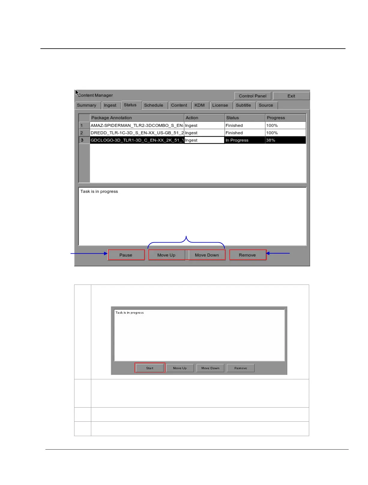 Pause to temporarily stop the download of the package(s) or CPL(s). The Pause button