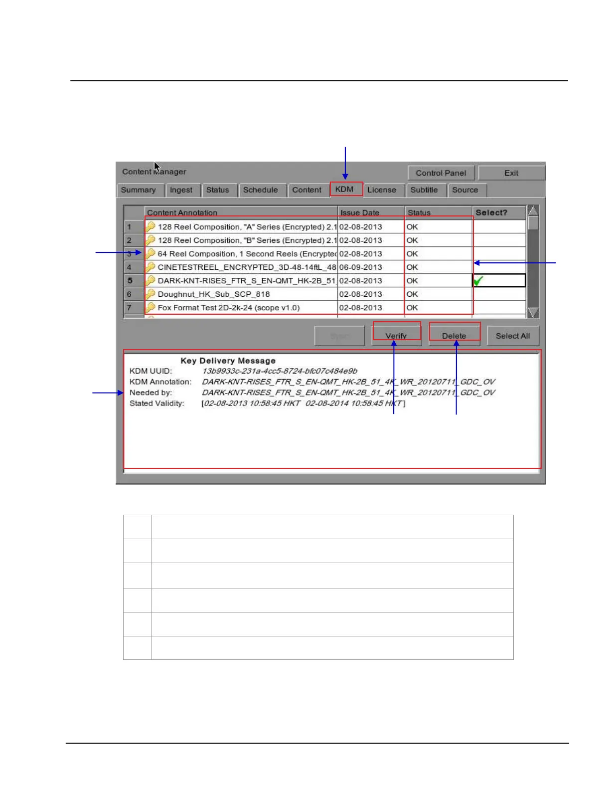 Show the details of the selected KDM, including target, CPL, UUID and date of validity