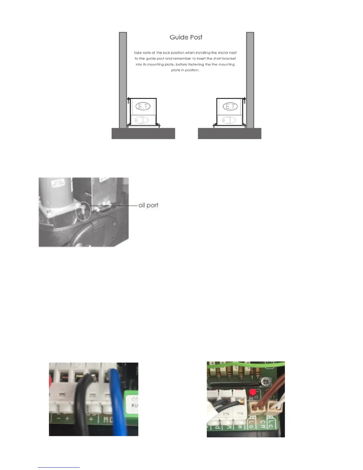 looking out, so firstly, if you`re gate closes to the right, swap over the white and brown wires on the “lc” and