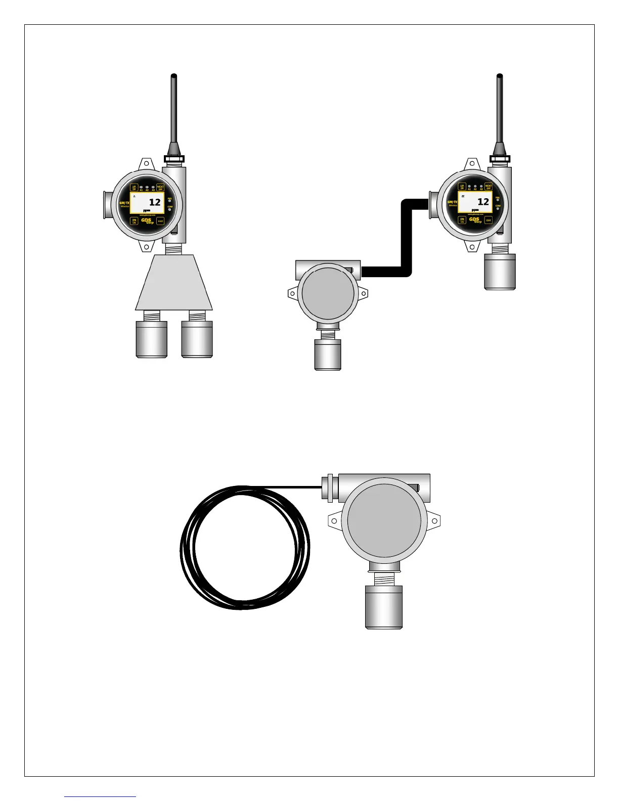 The GASMAX/TX also supports remote sensors located up to 15 feet from the GASMAX/TX display. Figure