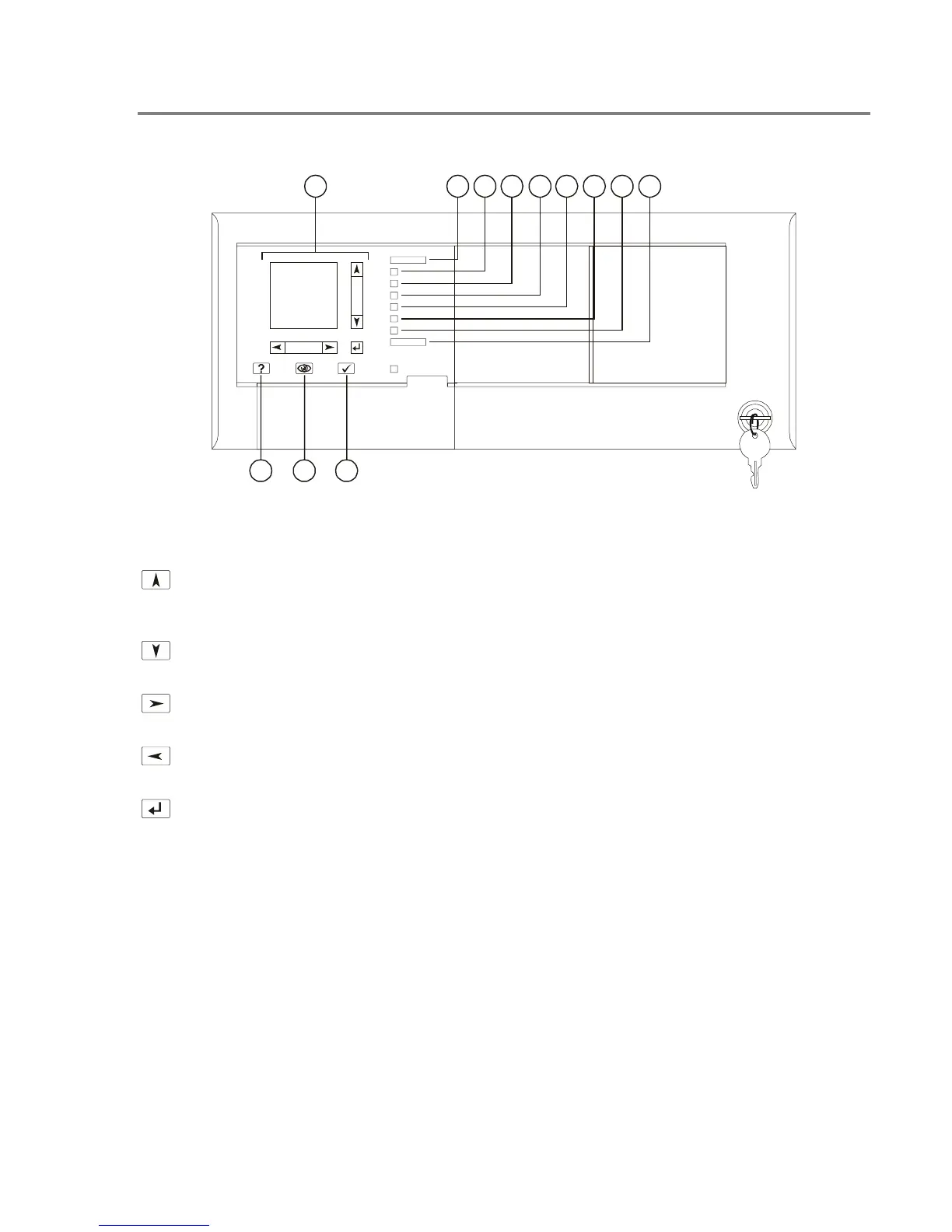 9. Power LED: Indicates the panel has ac power.