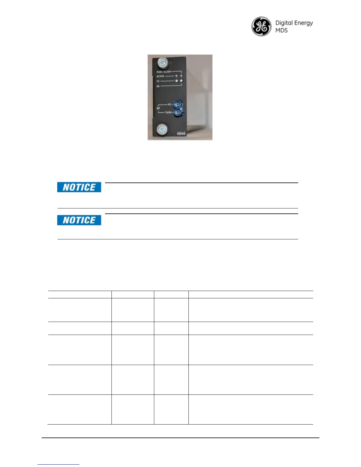 active/standby status as shown in the table below. Blue LEDs to indicate receiver transmit and