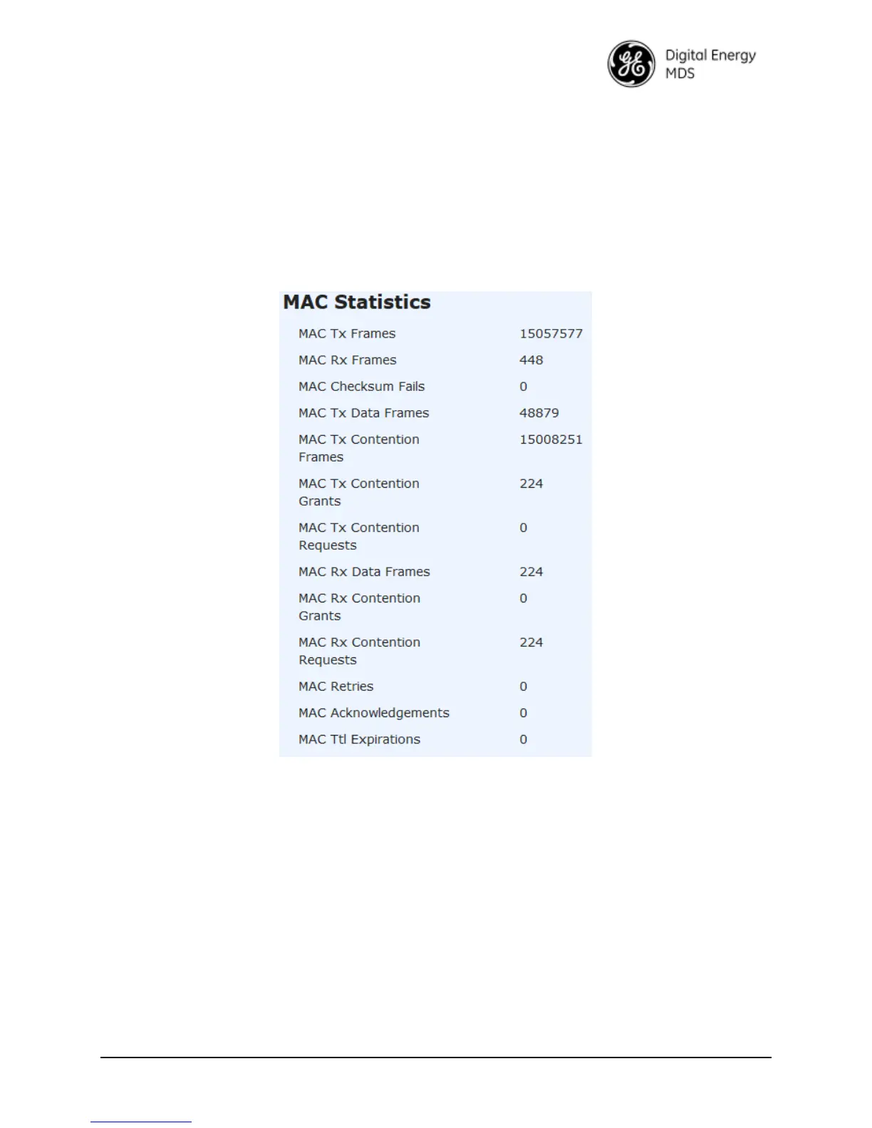 • MAC Checksum Fails – Total number of checksum failures on the MAC.